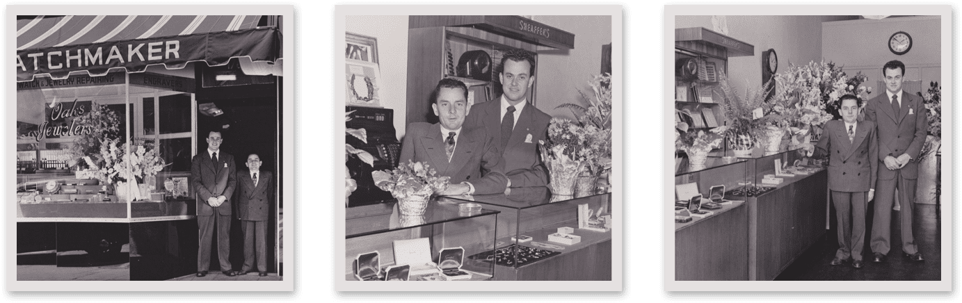 Oaks Jewelers was founded in 1948 by Henry Accornero and his half brother, Bob Zavattaro. At that time, the store was approximately half the size it is today, and was operated solely by the two dedicated brothers. Later, Henry’s wife Angie Accornero joined the Oaks Jewelers team.