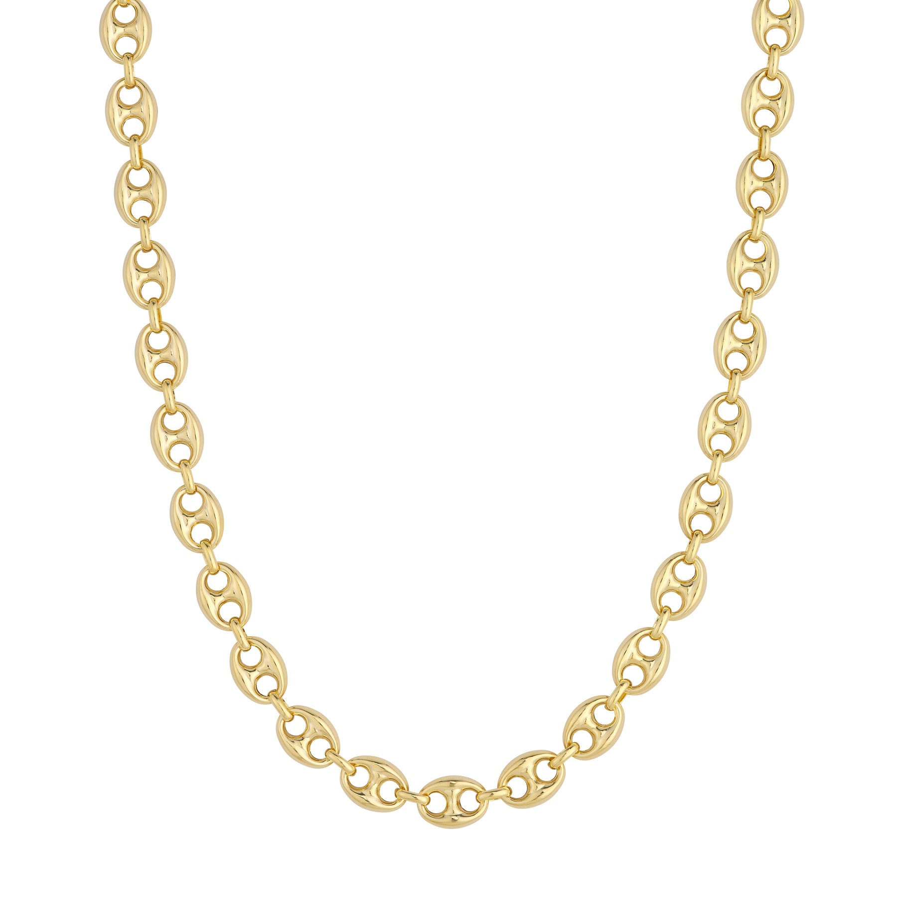 Our 10mm Puff Mariner is light and lustfull. The fancy oval lobster lock disappears seamlessly into the oval links of this 14K gold beauty for a sleek look.