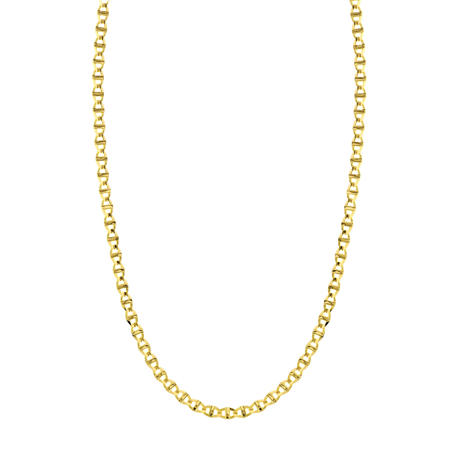 No need for layering because this chain makes more than enough of a statement. The links of the 14K gold Mariner Chain offer a unique pattern.