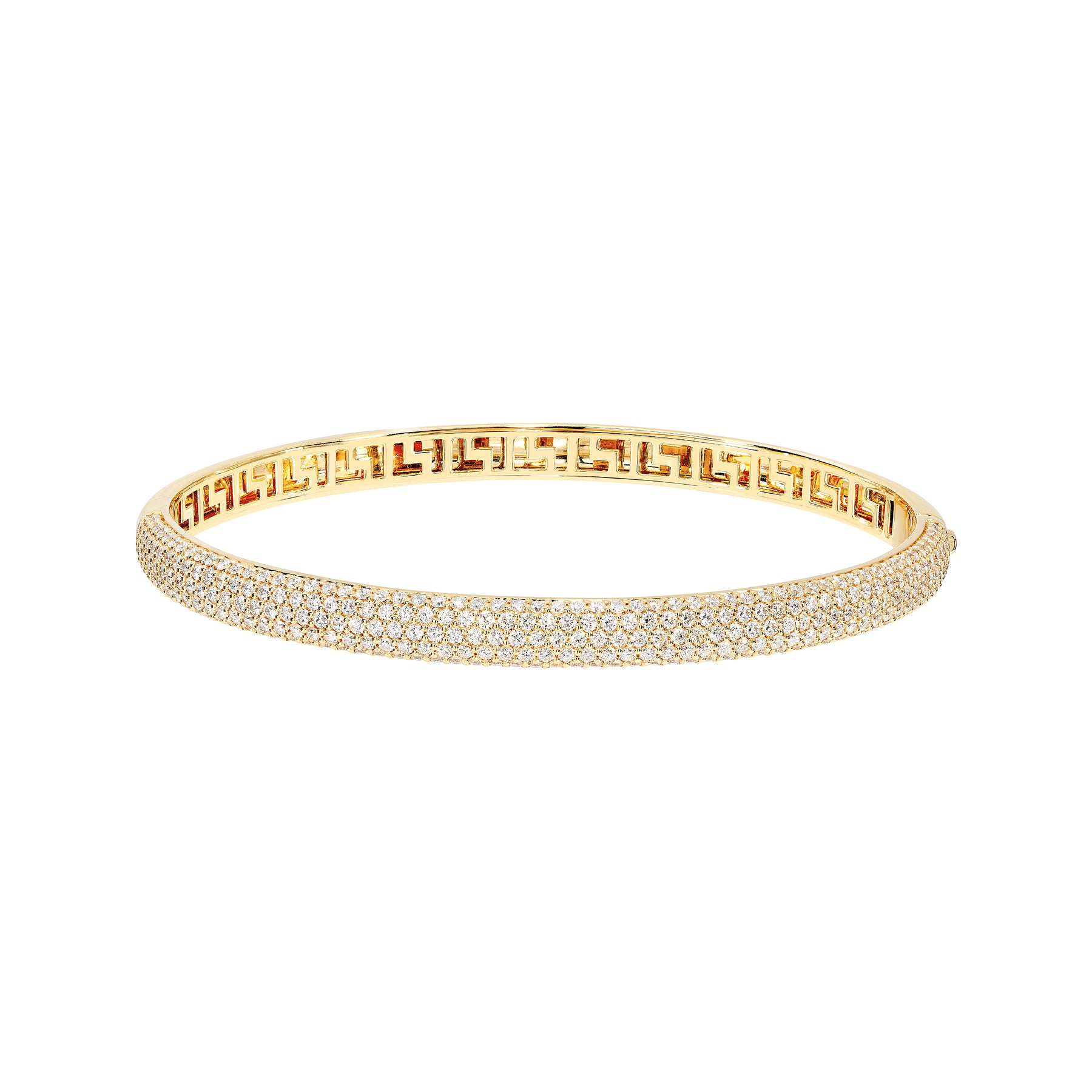 The perfect blend of brilliance and bold sophistication–radiate luxury with this 2-7/8tcw Diamond Half Pavé Bangle. Featuring five rows of dazzling pave diamonds.