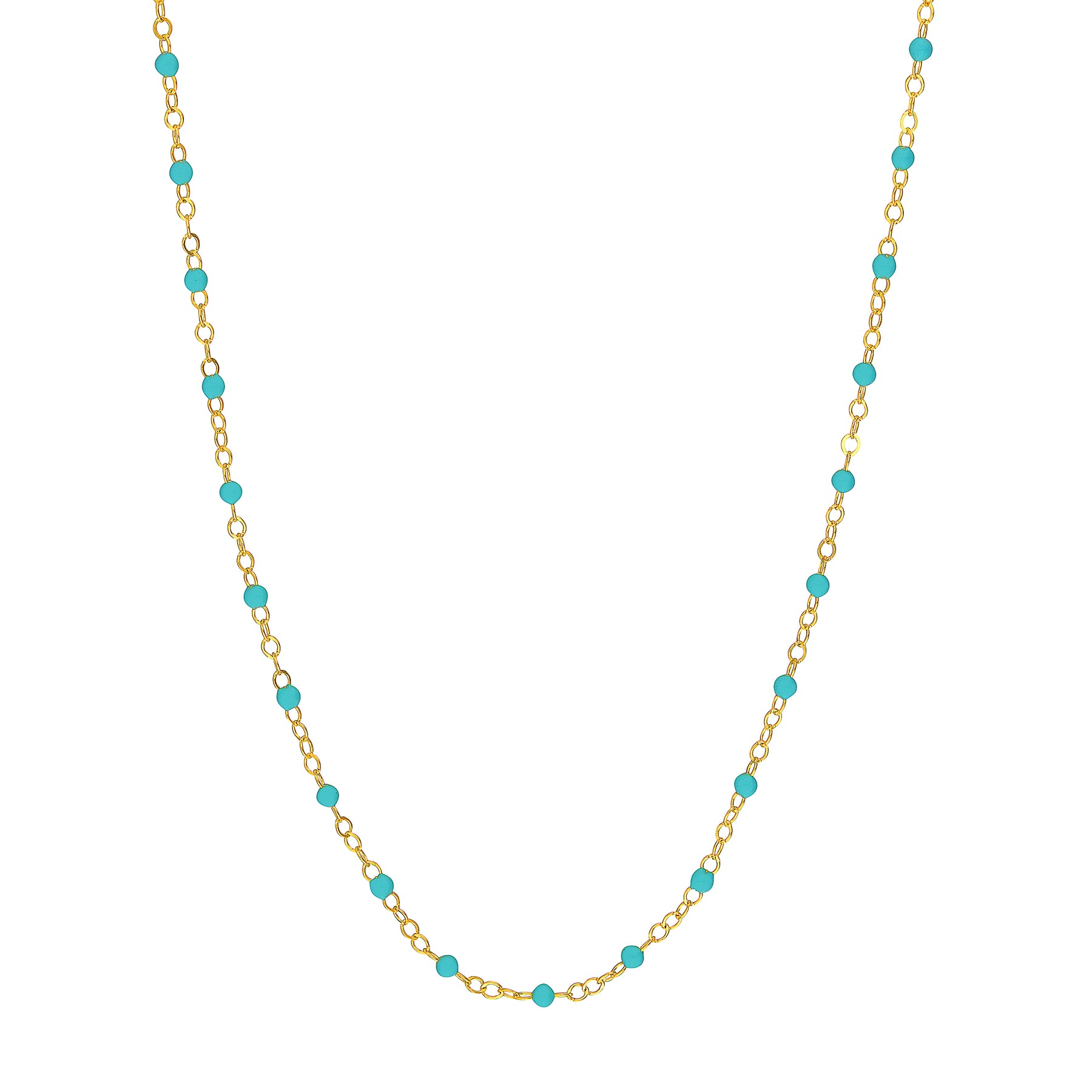 From our Color Romance Collection, this light turquoise enamel beaded piatto chain will add a pop of color to any outfit. Crafted in 14K gold, this 1 inch adjustable chain secures with a spring ring.
