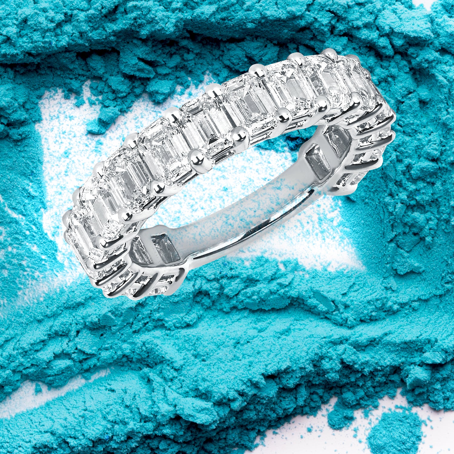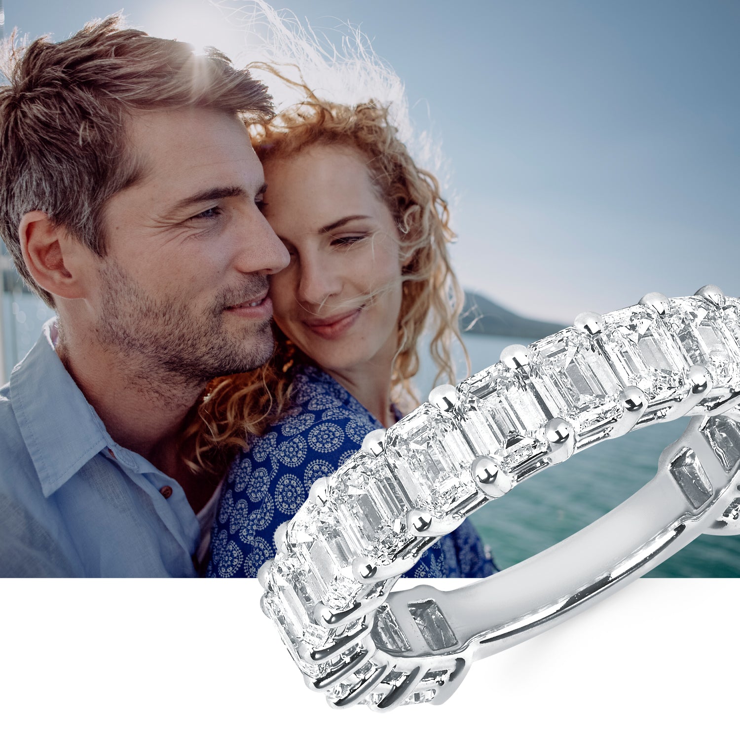 Eco-Brilliance®4.25 Ctw. Prong Set 17 Emerald Cut Stone Lab-Created Diamond Anniversary Band In 14K Gold. Center Stone Included