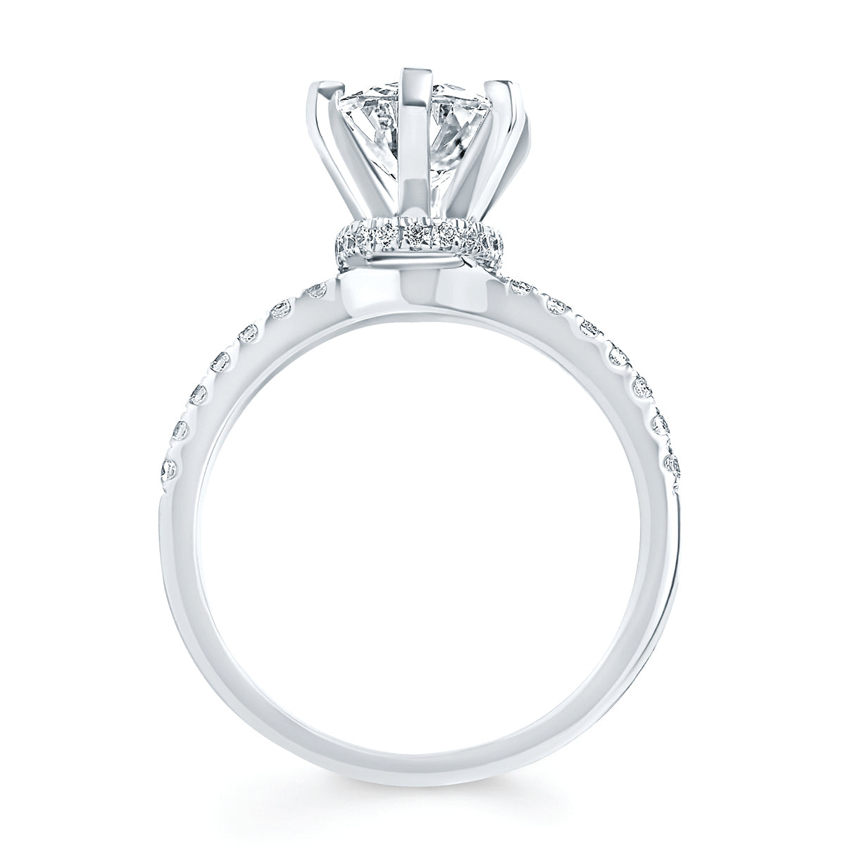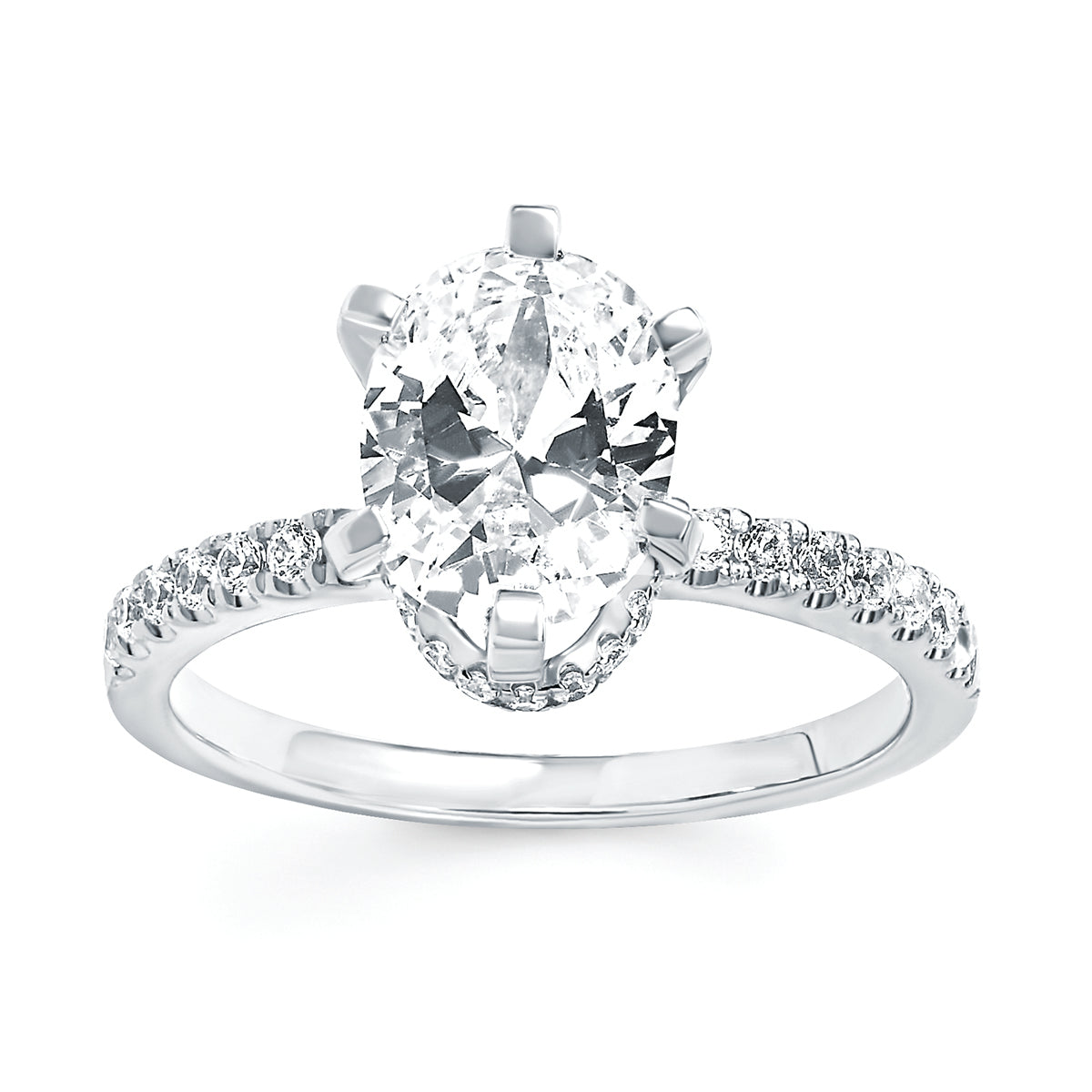 Engagement Ring: Forever Elegant® 1/4 Ctw. Diamond Semi Mount shown with 1.5 Ct. Oval Center Diamond in 14K Gold shown with Forever Elegant® 1/5 Ctw. Diamond Wedding Band in 14K Gold - Items also available to purchase separately