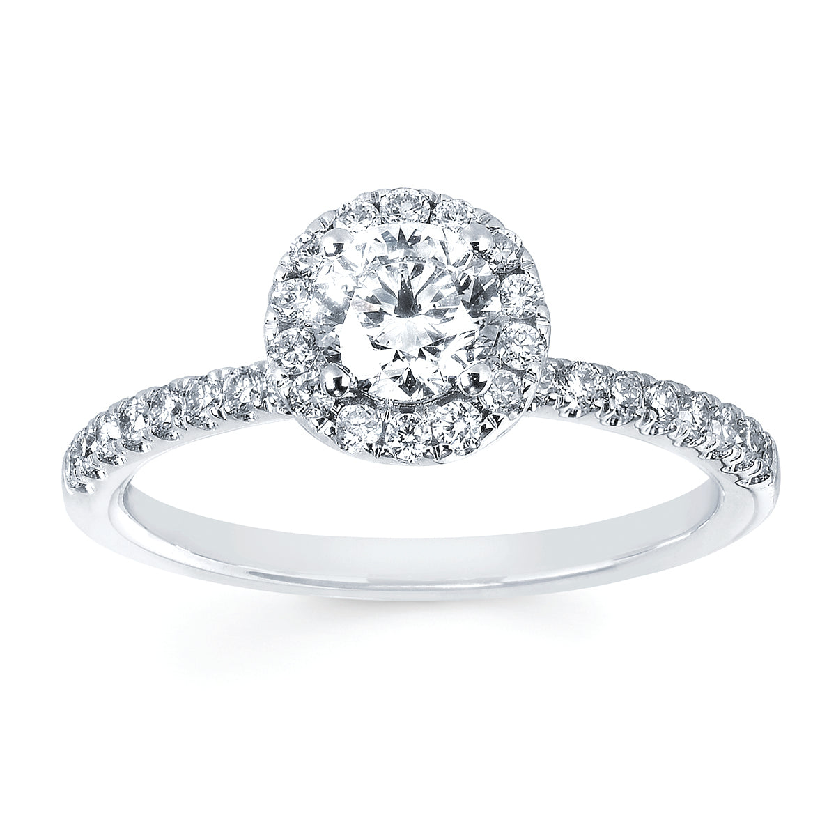 Engagement Ring: Eco-Brilliance® Lab-Created 1 Ctw. Diamond Engagement Ring with a 3/4 Ct. Round Center in 14K Gold shown with Eco-Brilliance® Lab-Grown 1/5 Ctw. Diamond Wedding Band in 14K Gold - Items also available to purchase separately