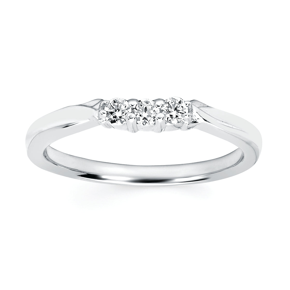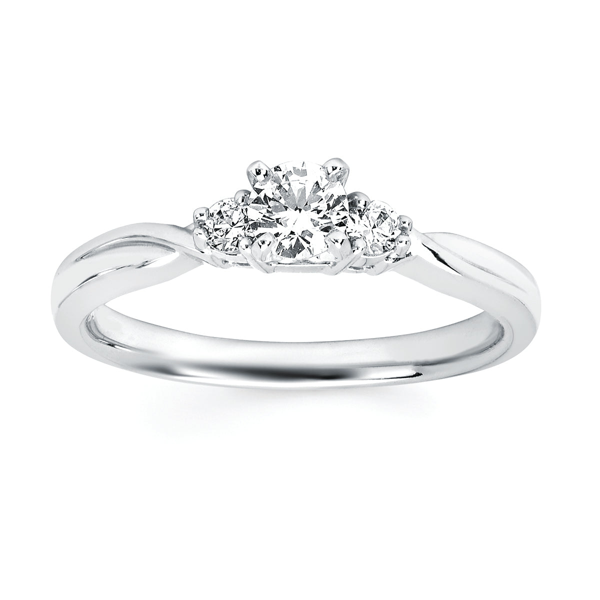 Engagement Ring: 3 Stone Bridal: 1/10 Ctw. Diamond Semi Mount shown with 1/4 Ct. Round Center Diamond in 14K Gold shown with 1/6 Ctw. Diamond Wedding Band in 14K Gold - Items also available to purchase separately