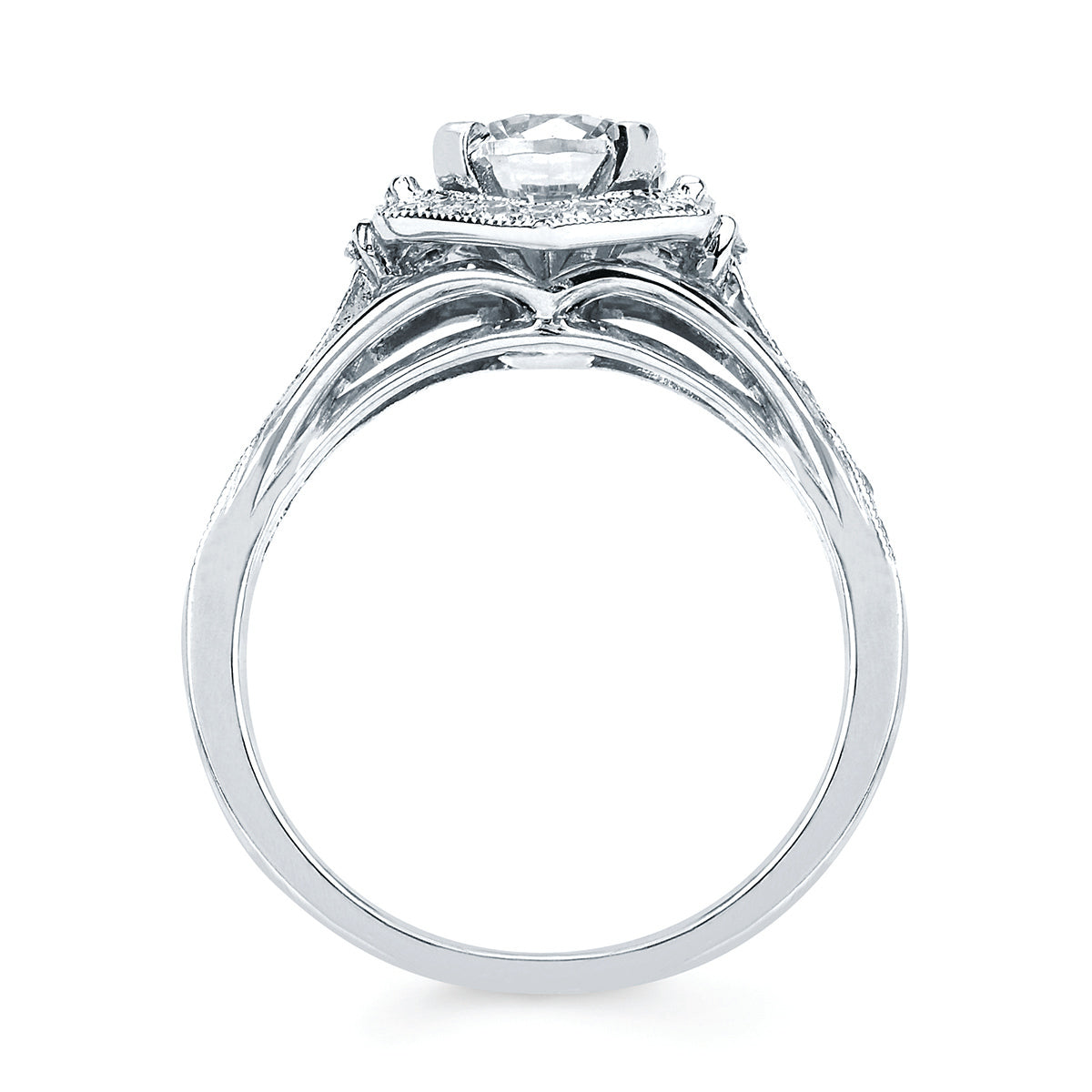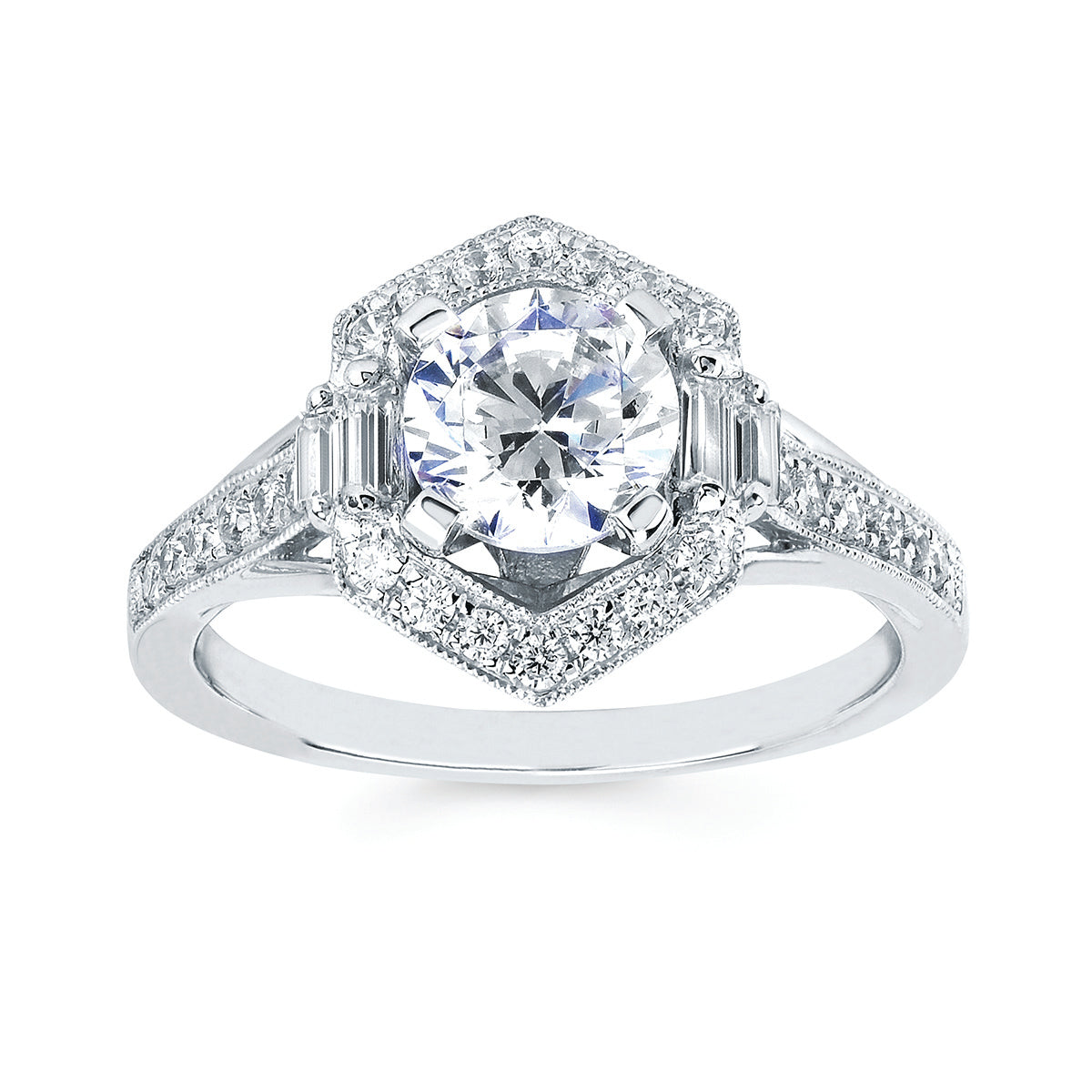 Engagement Ring: Forever Elegant® 3/8 Ctw. Diamond Semi Mount shown with 1 Ct. Round Center Diamond in 14K Gold shown with Forever Elegant® 1/8 Ctw. Diamond Wedding Band in 14K Gold - Items also available to purchase separately