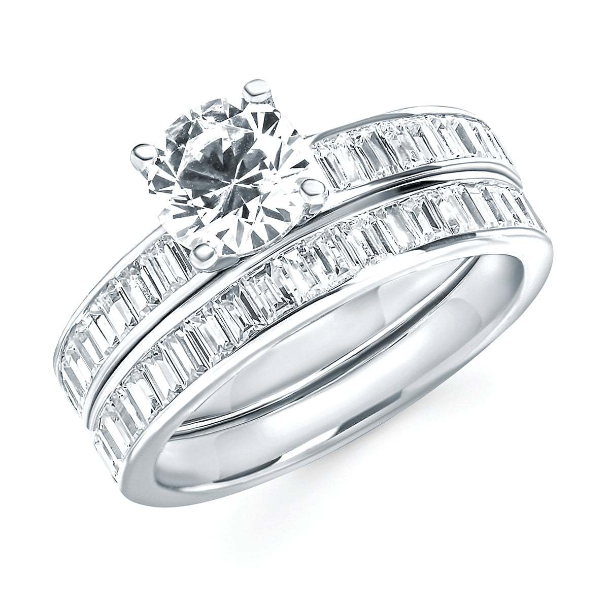 Engagement Ring: Modern Bridal: 1/2 Ctw. Diamond Semi Mount shown with 1 Ct. Round Center Diamond in 14K Gold shown with 1/2 Ctw. Diamond Wedding Band in 14K Gold - Items also available to purchase separately