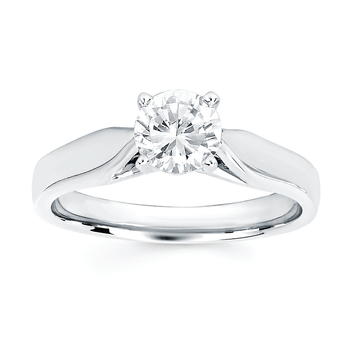 Engagement Ring: Classic Bridal: Diamond Ring shown with 3/4 Ct. Round Center Stone in 14K Gold shown with .04 Ctw. Diamond Contour Wedding Band in 14K Gold - Items also available to purchase separately