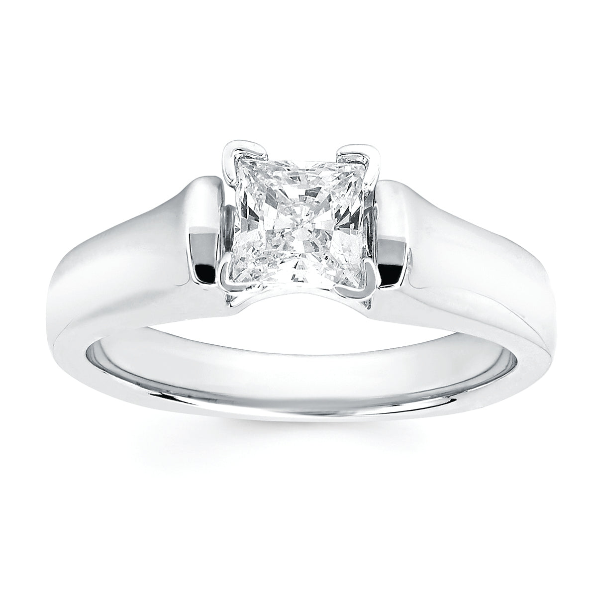 Engagement Ring: Classic Bridal: Diamond Ring shown with 3/4 Ct. Princess Cut Center Diamond in 14K Gold shown with 1/5 Ctw. Diamond Wedding Band in 14K Gold - Items also available to purchase separately