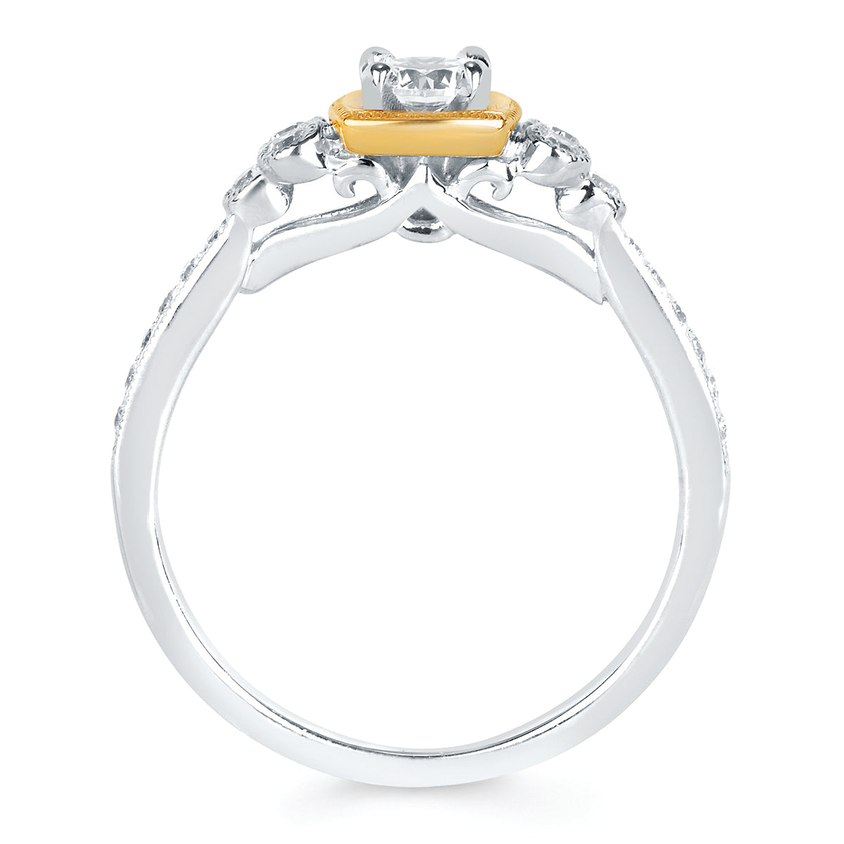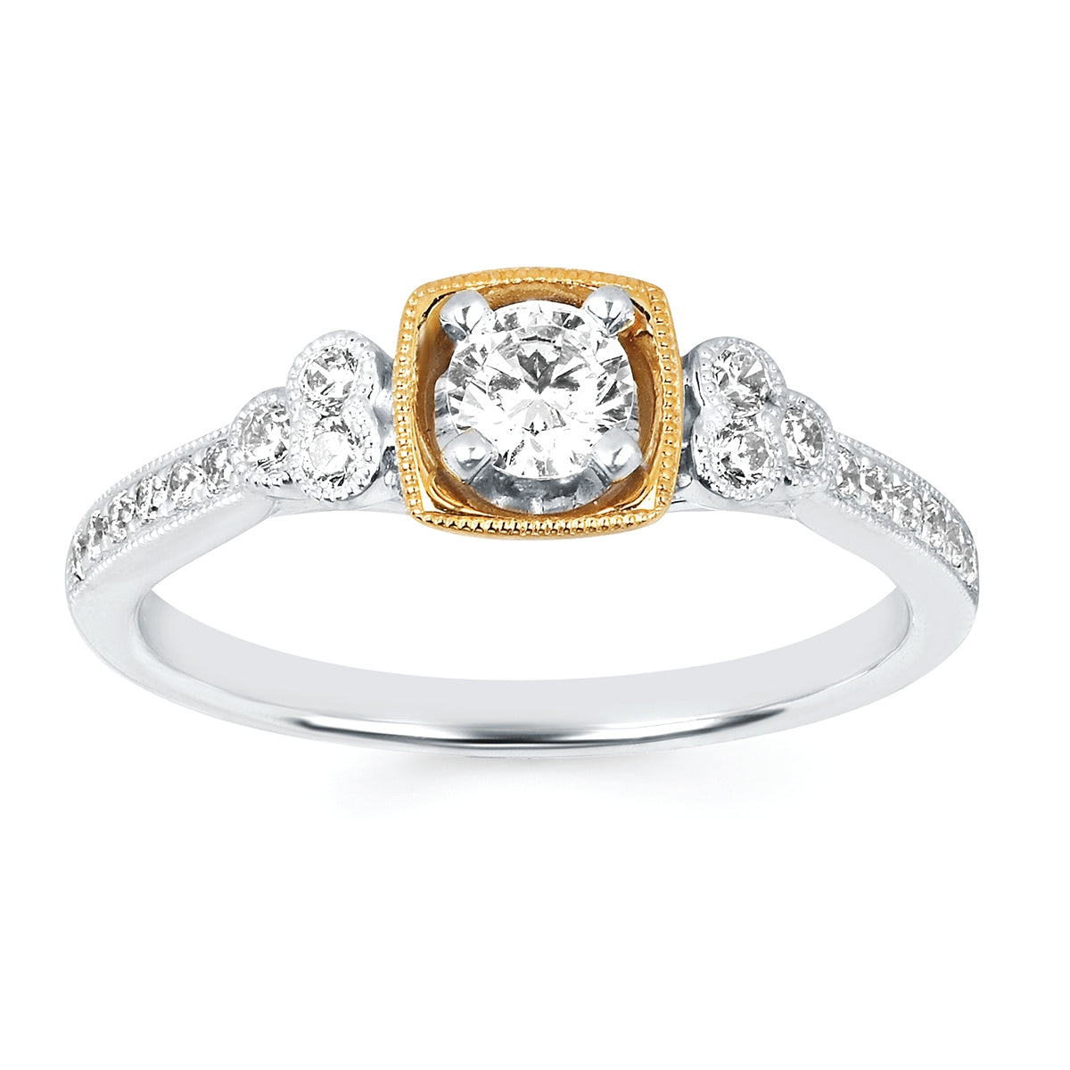 Modern: 1/2 Ctw. Diamond Semi Mount Shown with 1/4 Round Center Diamond in 14K Gold 1/7 Ctw. Diamond Wedding Band in 14K Gold Items also available to purchase separately. Center Diamond and Center Stone Included