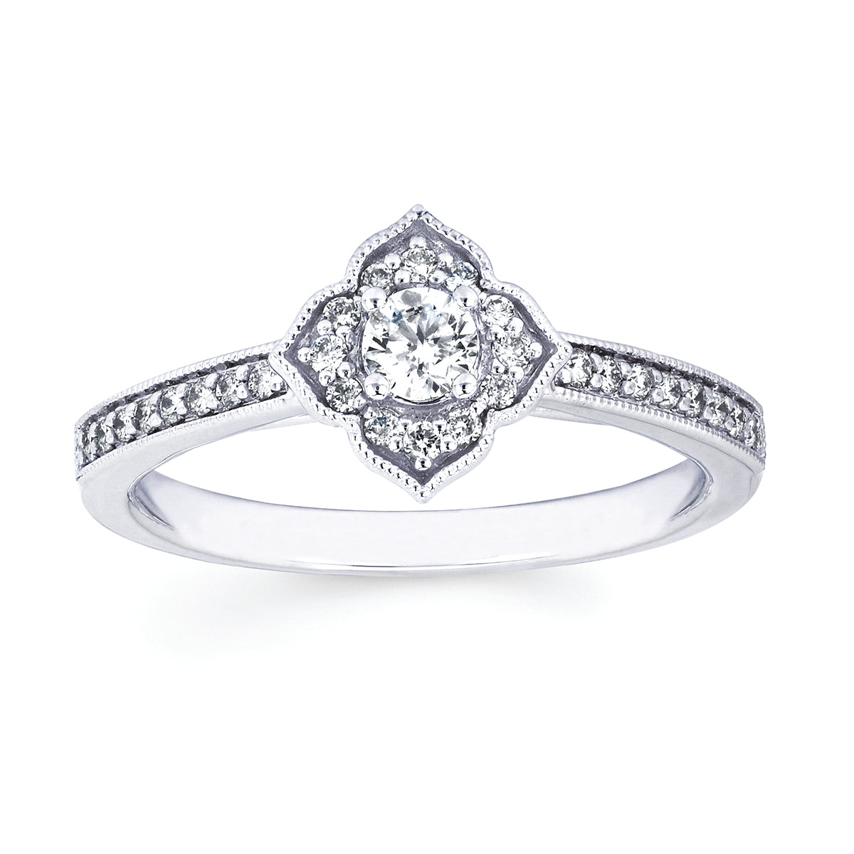 Vintage: 1/5 Ctw. Diamond Semi Mount Available with 1/8 Round Center Diamond in 10K Gold 1/8 Ctw. Diamond Wedding Band in 10K Gold Items also available to purchase separately. Center Stone Included