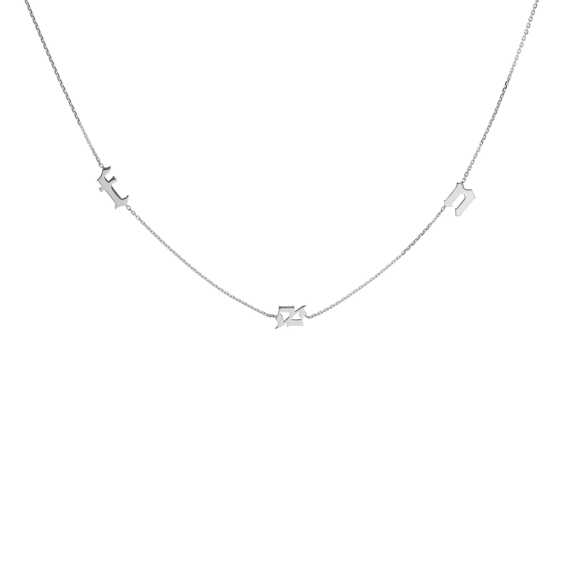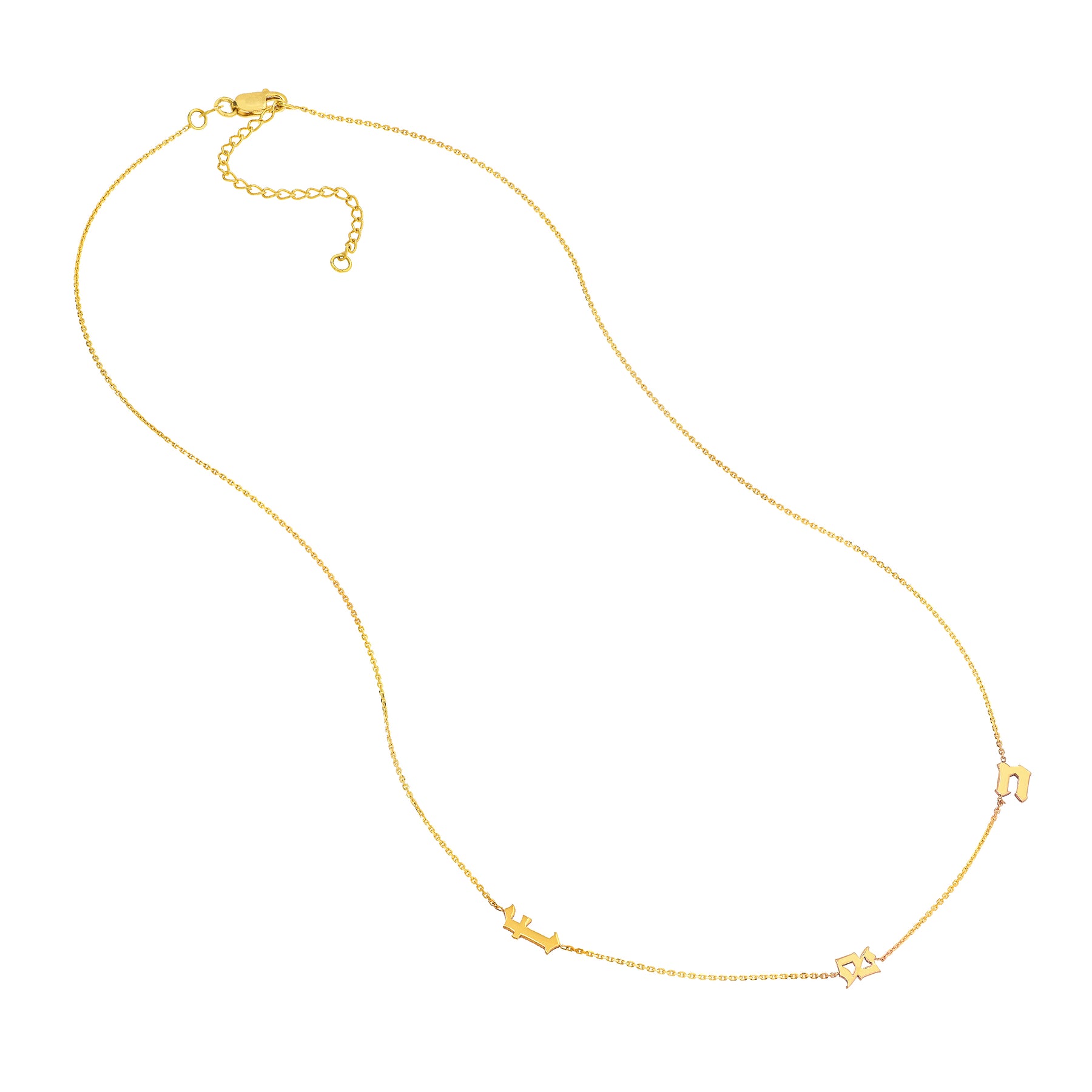 Make it personal with this 7mm initial station necklace. The gothic font intials sit east to west for an unique look on a 2 inch adjustable chain.