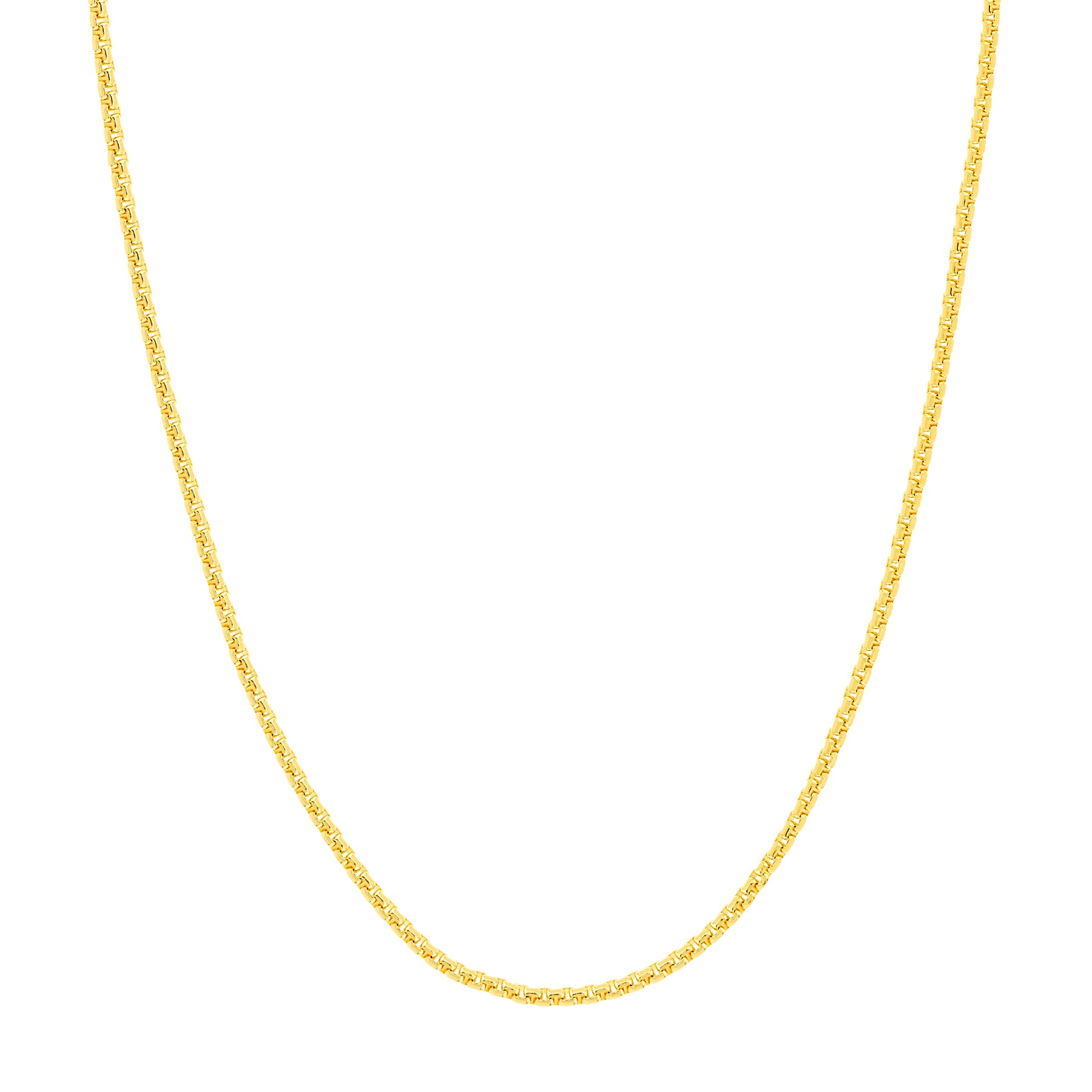 Make a bold statement with the Solid Round Box Chain. Sturdy and distinct, this 14K gold chain measures 2.6mm wide and is secured with a lobster lock.