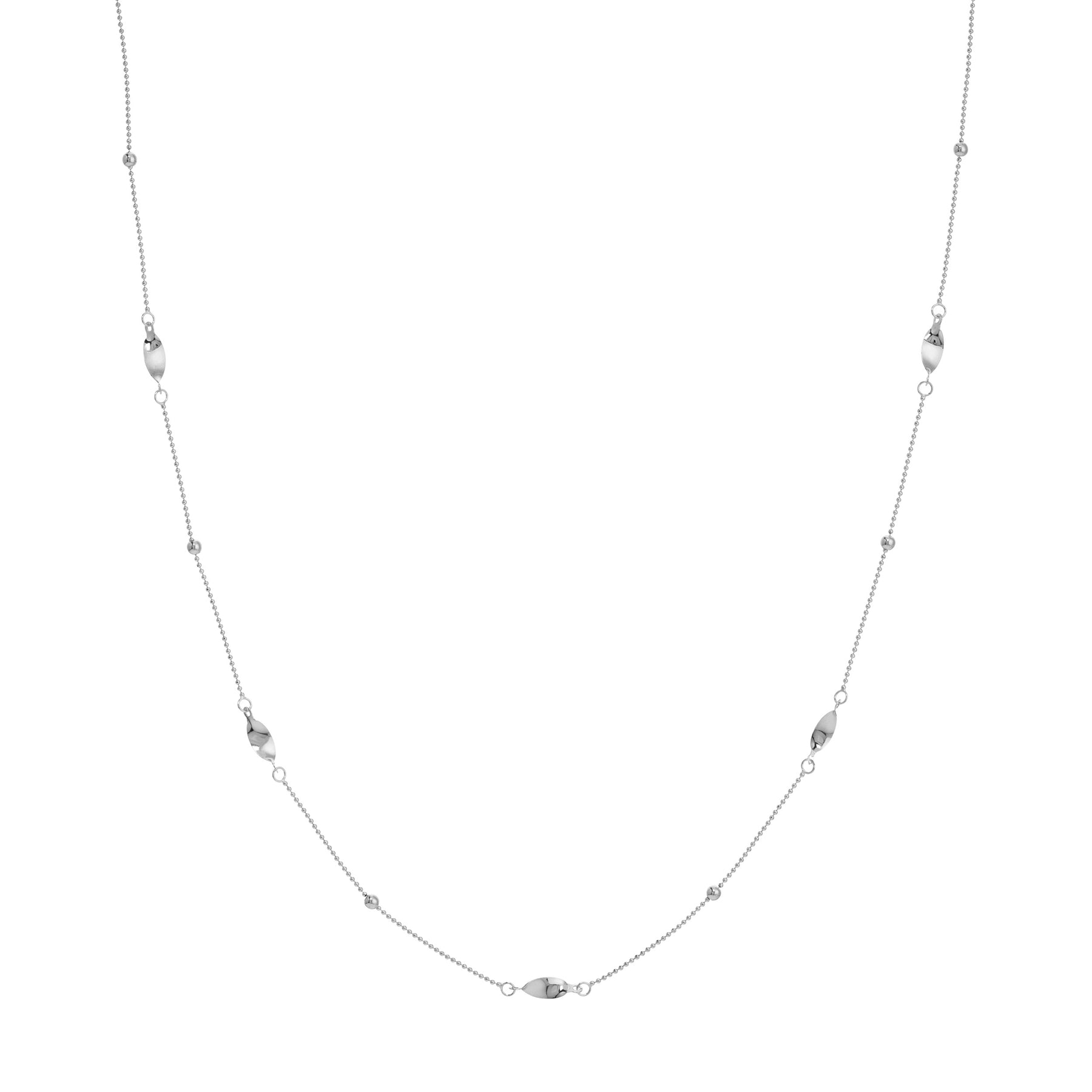 The quintessential piece for your wardrobe. This 14K yellow gold bead and twisted marquise stations necklace pairs perfectly with any outfit.