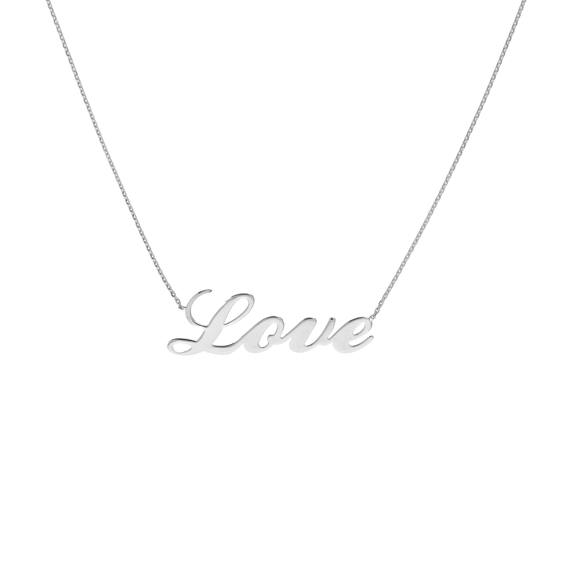 Radiate love with this necklace featuring the word love in a flowing cursive. Crafted in 14K gold and on a 16-18 inch adjustable chain.