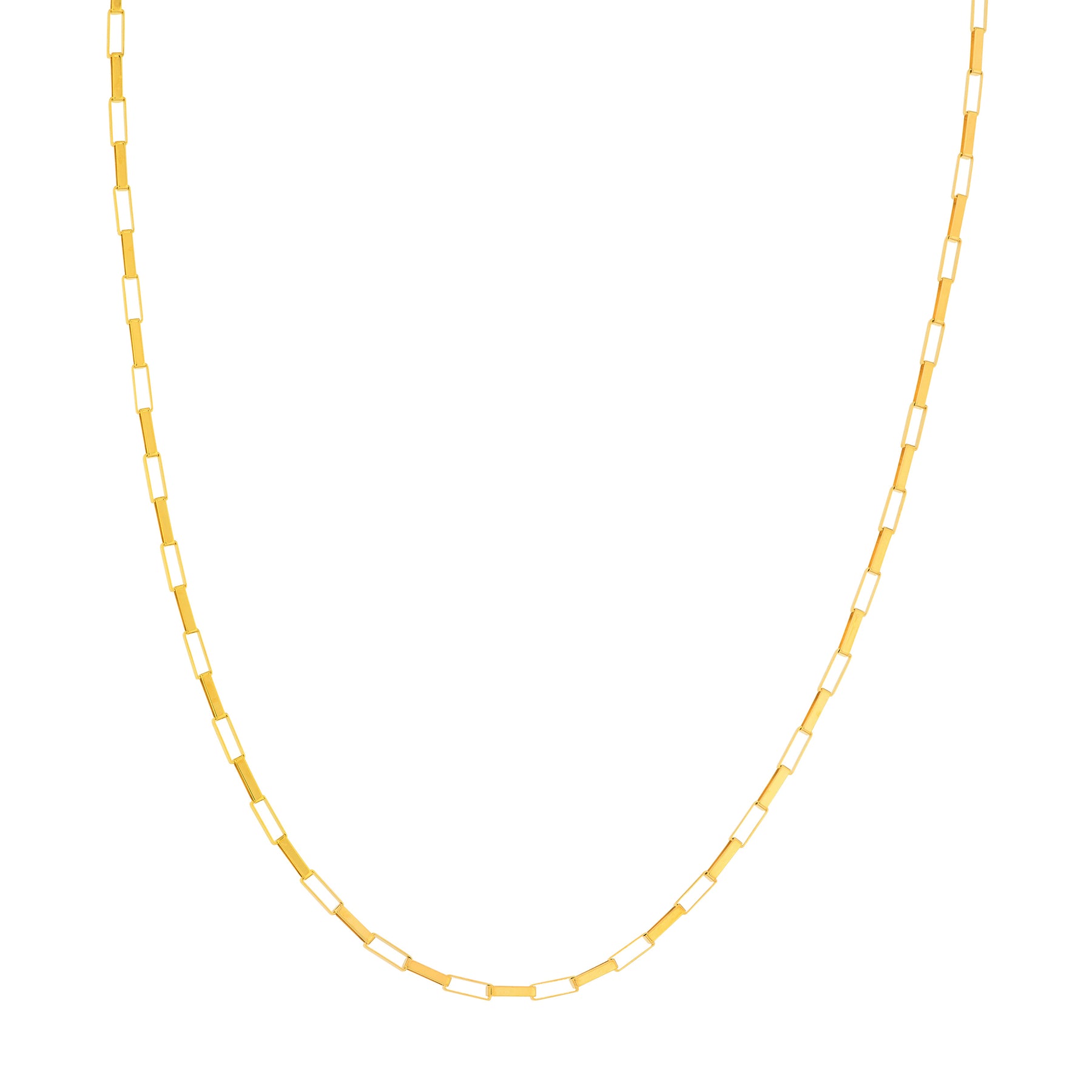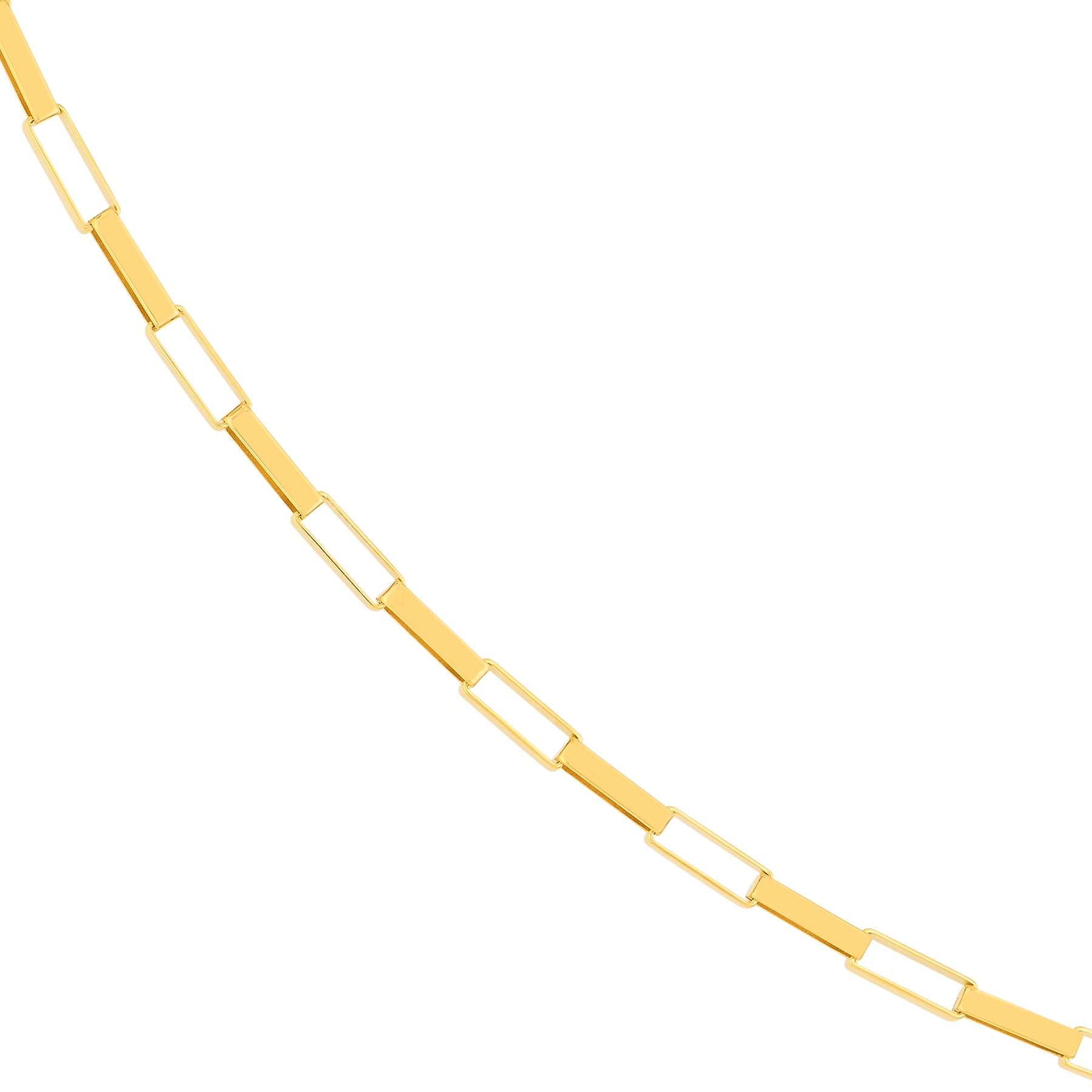 A unique twist on a modern chain. With open links and a boxy texture, this style is sure to turn heads. Made in 14K gold, this chain secures with a pear shape lobster lock.