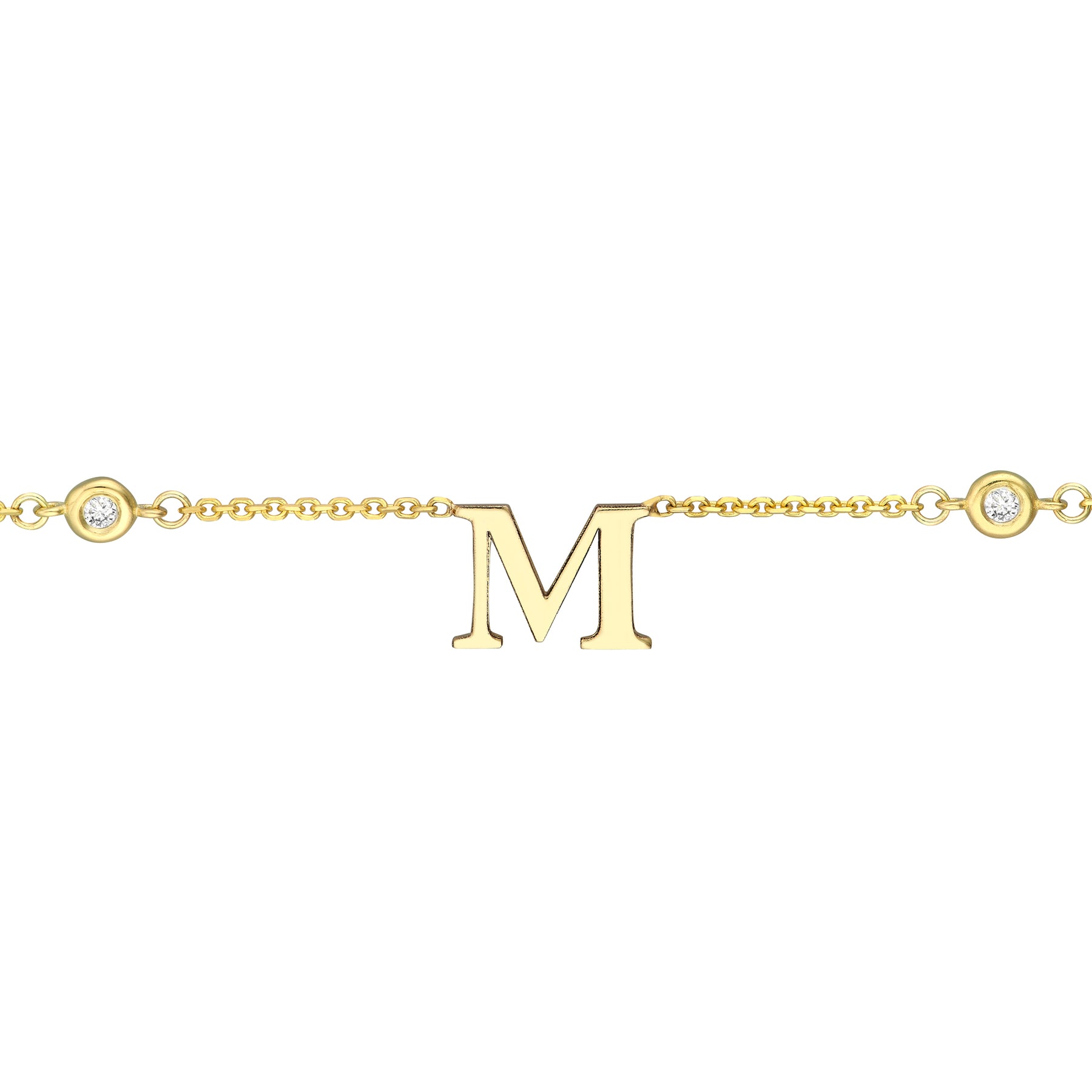 Wear your initial or your loved ones on this 14K gold diamond bezel station necklace. This stunning and simple necklace will turn into your favorite.