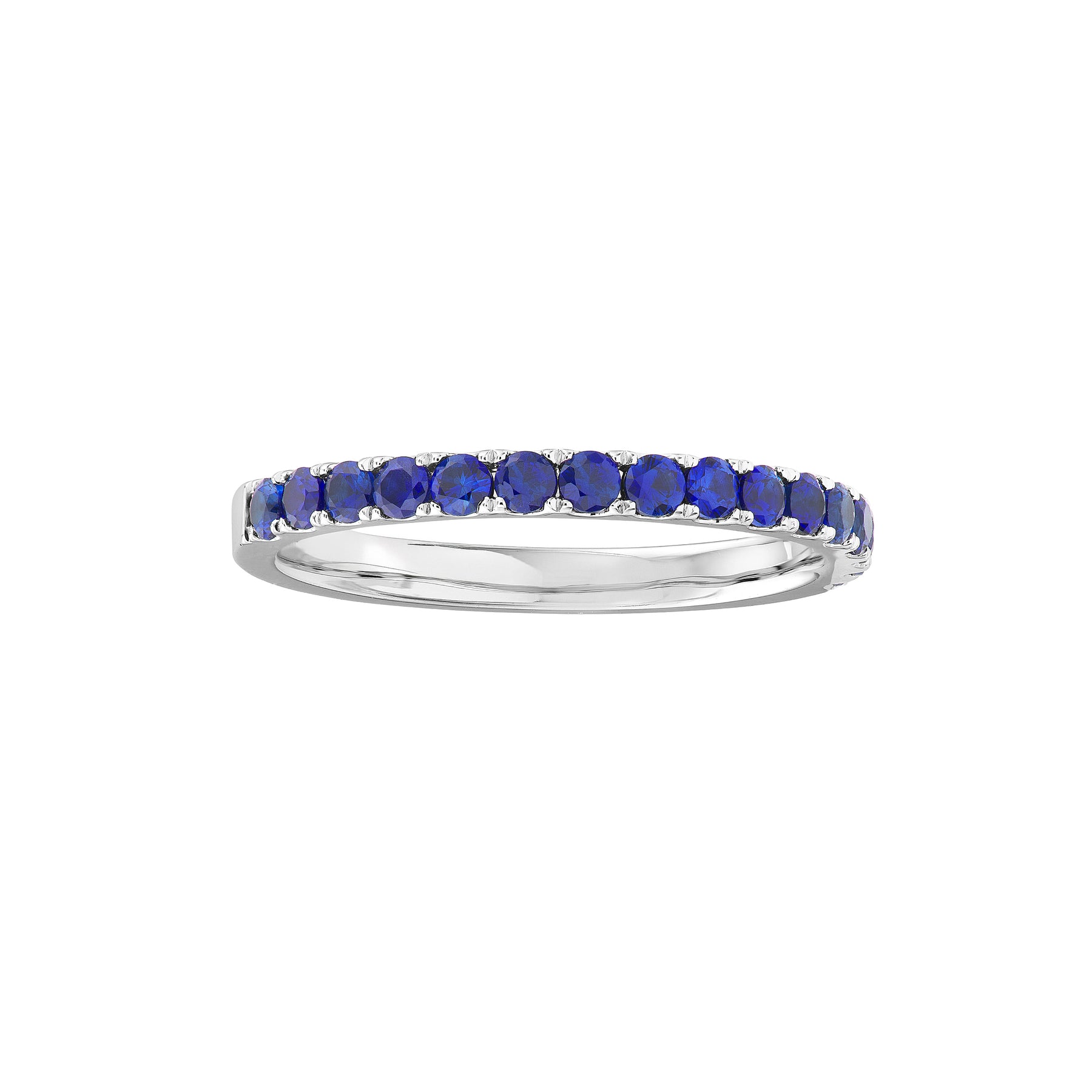 Adorn yourself with color This beautiful 2mm band features sapphire gemstones halfway around, adding a vibrant touch to your stack.