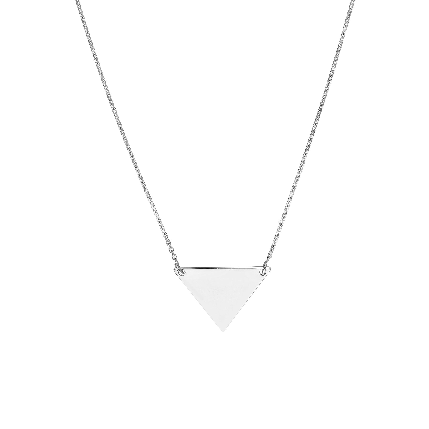 For a polished look, add a contemporary piece to your outfit. This triangle drop necklace lies on an adjustable chain, and is engravable.