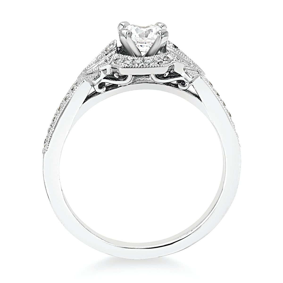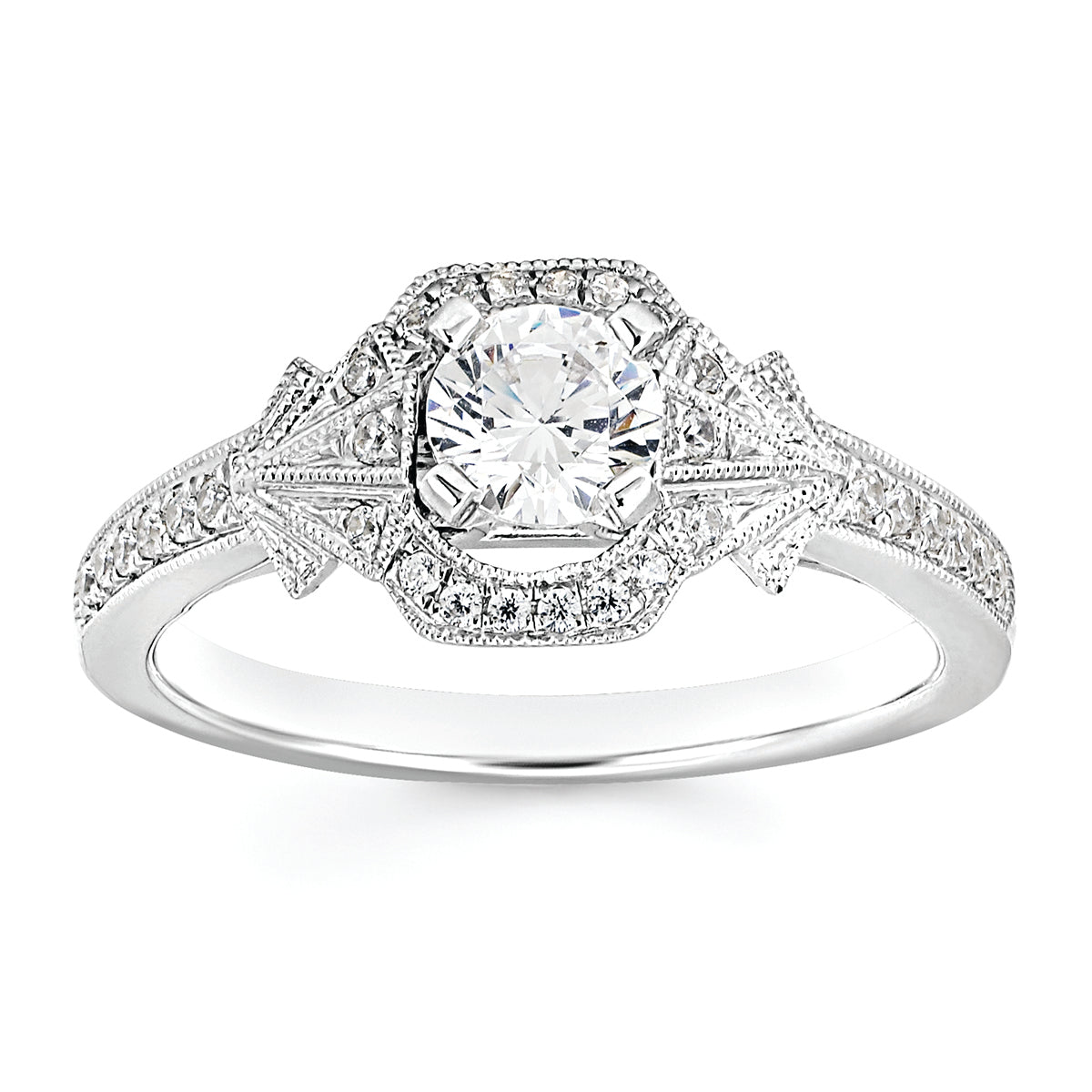 Engagement Ring: Forever Elegant® 1/8 Ctw. Diamond Semi Mount shown with 1/2 Ct. Round Center Diamond in 14K Gold shown with Forever Elegant® 1/10 Ctw. Diamond Wedding Band in 14K Gold - Items also available to purchase separately