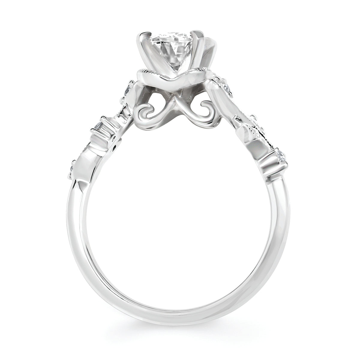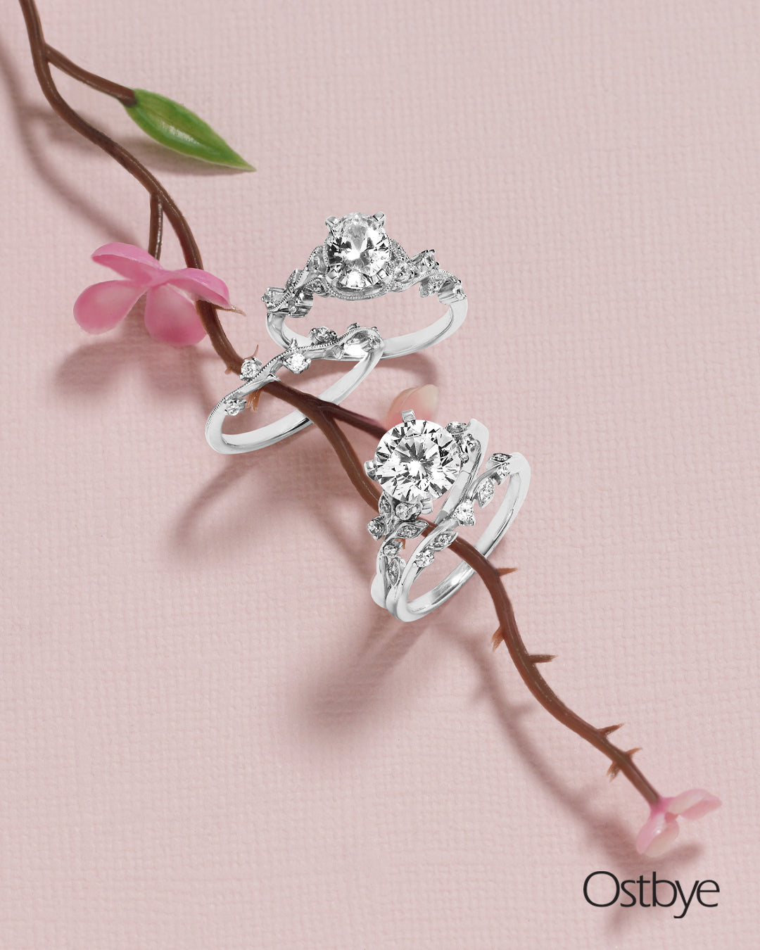 Engagement Ring: Forever Elegant® 1/8 Ctw. Diamond Semi Mount shown with 1 Ct. Oval Center Diamond in 14K Gold shown with Forever Elegant® 1/8 Ctw. Diamond Wedding Band in 14K Gold - Items also available to purchase separately