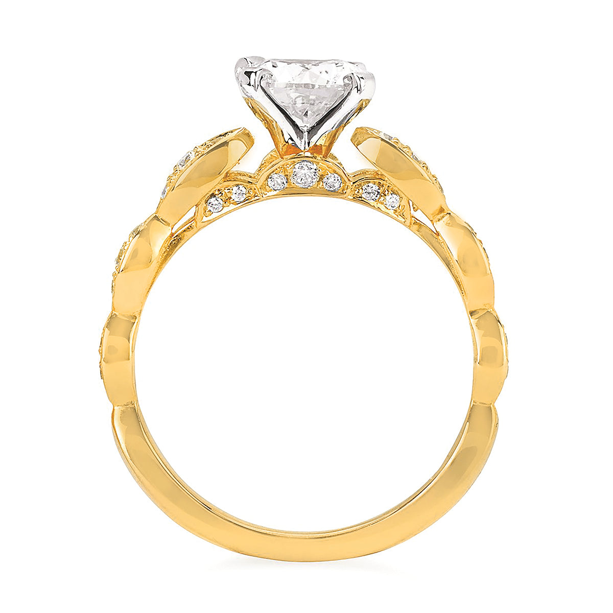 Engagement Ring: Forever Elegant® 1/5 Ctw. Diamond Semi Mount shown with 1 Ct. Round Center Diamond in 14K Gold shown with Forever Elegant® 1/8 Ctw. Diamond Wedding Band in 14K Gold - Items also available to purchase separately