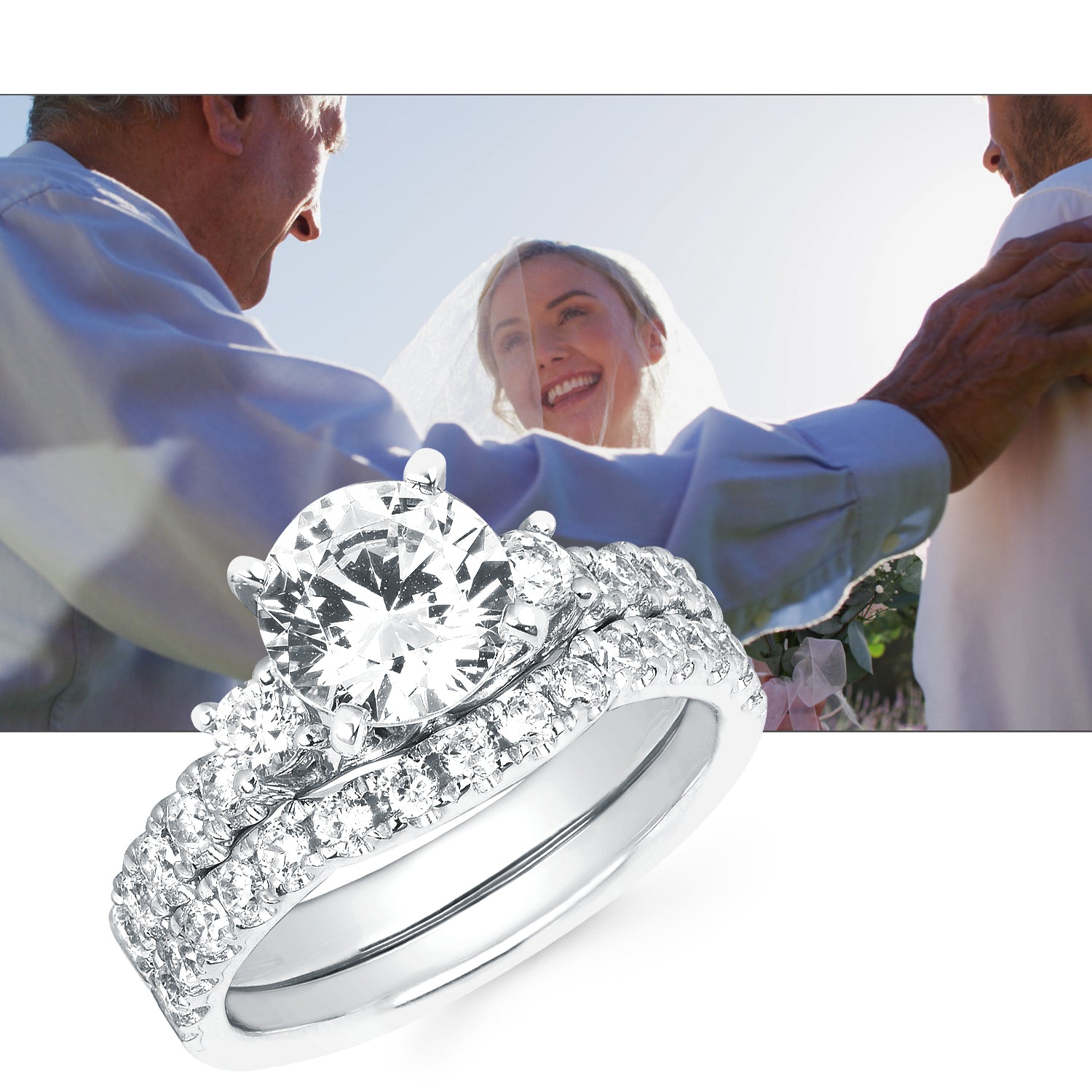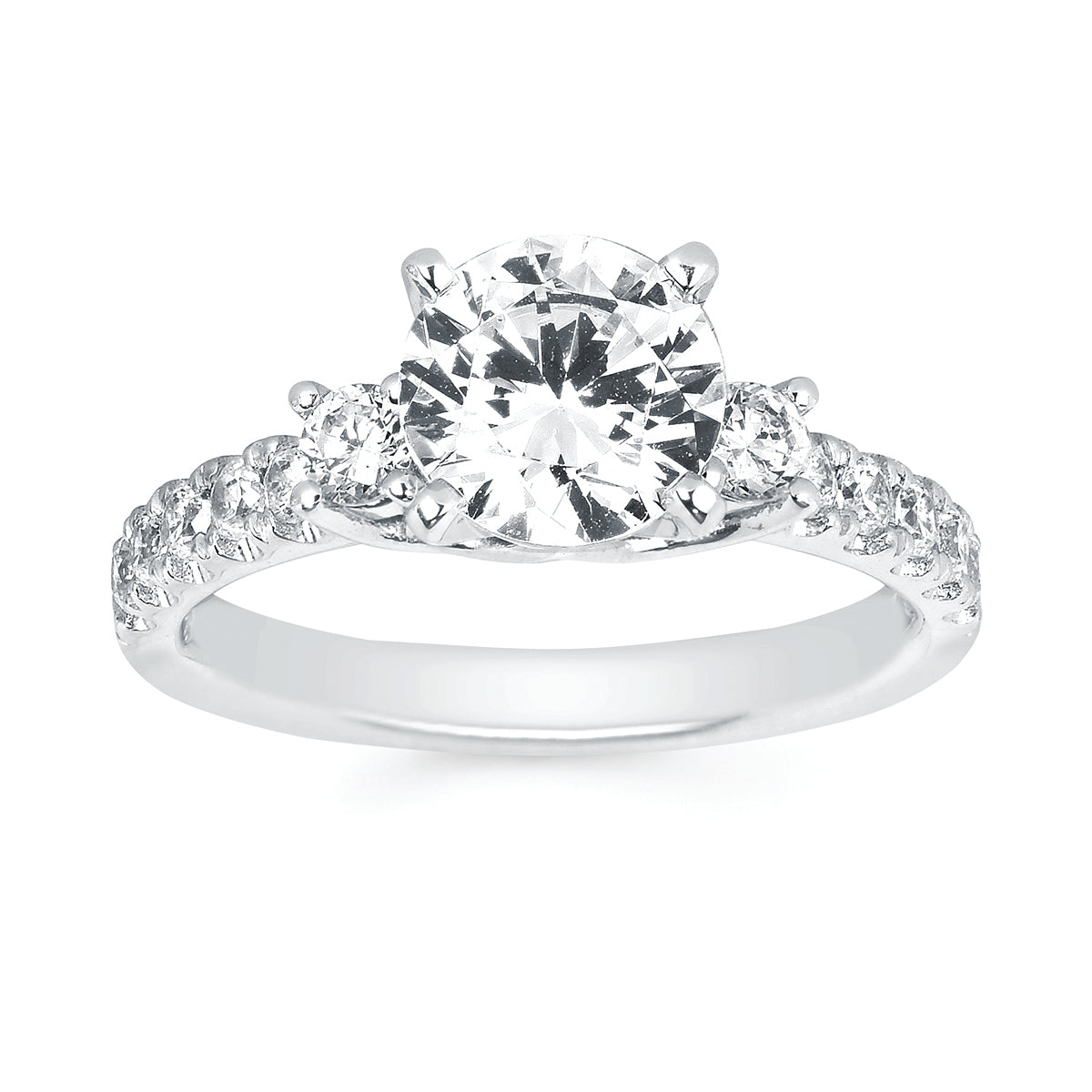Engagement Ring: Forever Elegant® 1/2 Ctw. Diamond Semi Mount shown with 1.50 Ct. Round Center Diamond in 14K Gold shown with Forever Elegant® 3/8 Ctw. Diamond Wedding Band in 14K Gold - Items also available to purchase separately