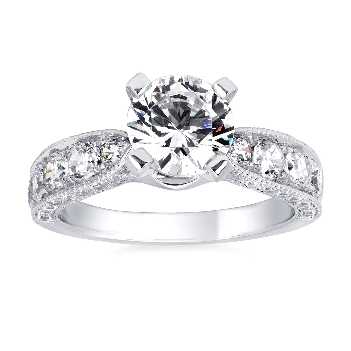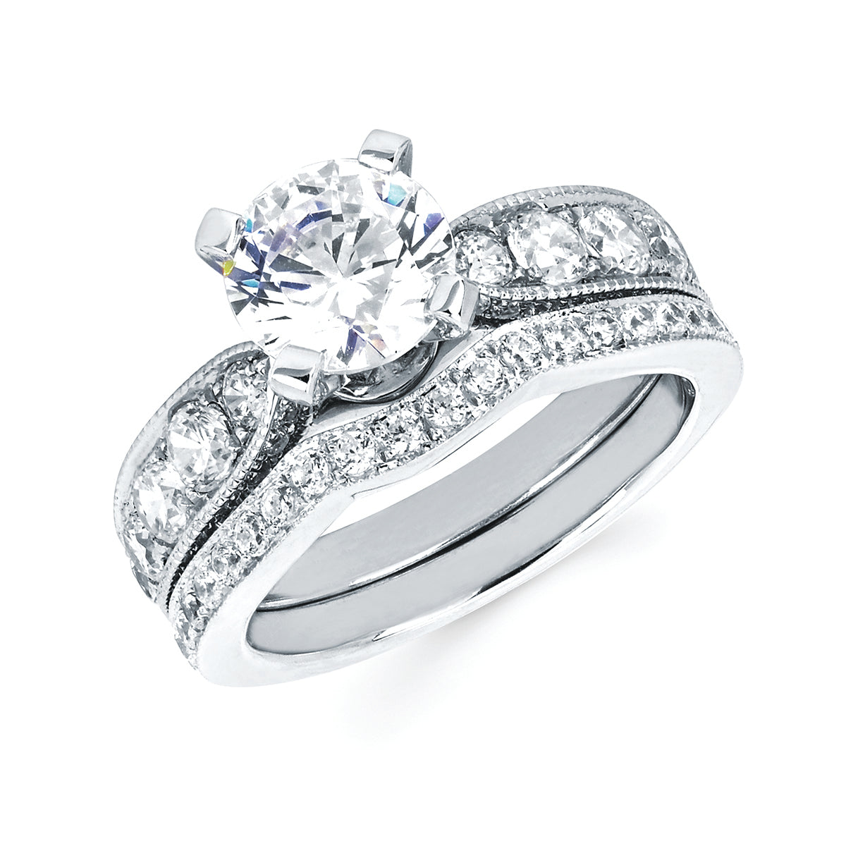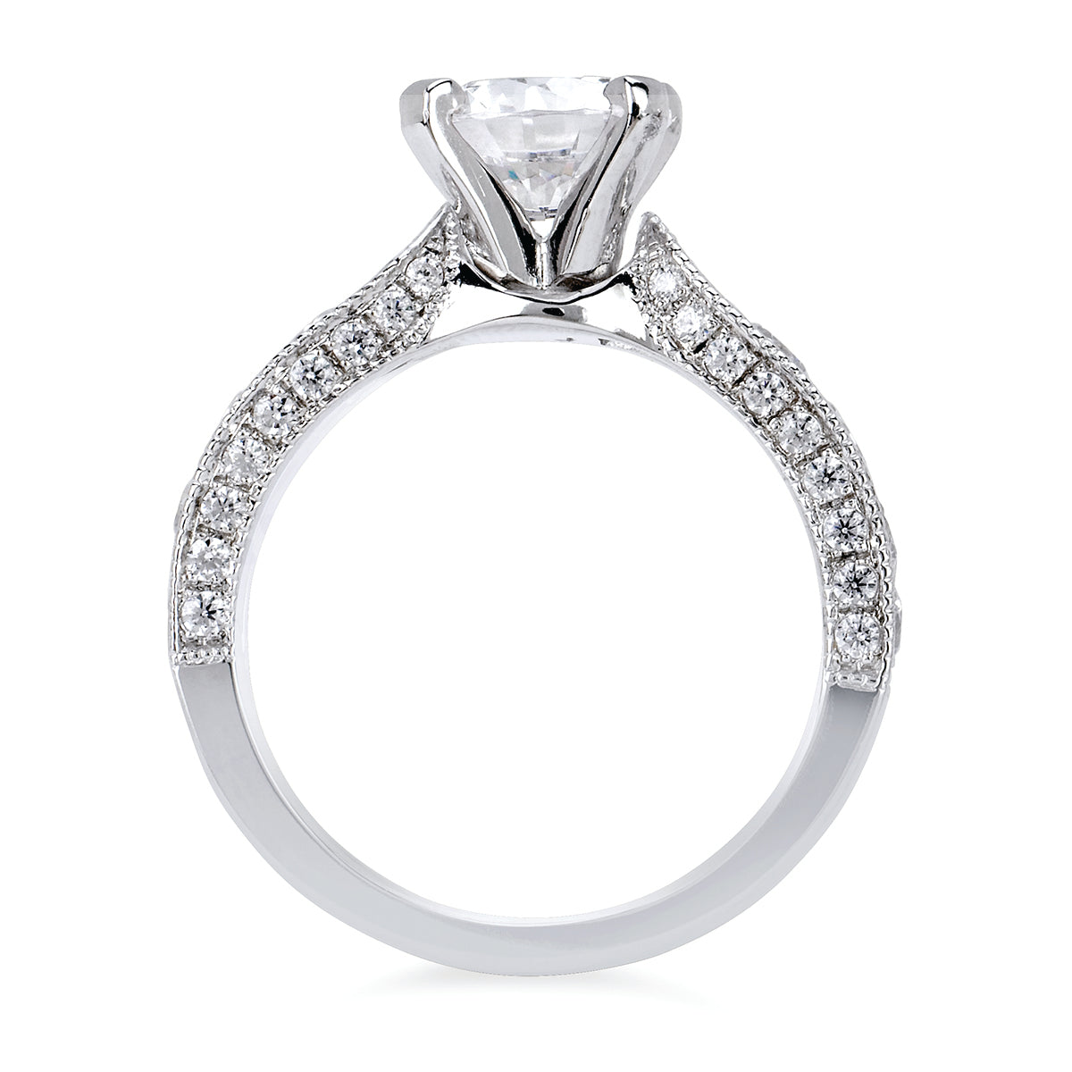 Engagement Ring: Forever Elegant® 1 1/10 Ctw. Diamond Semi Mount shown with 1 1/2 Ct. Round Center Diamond in 14K Gold shown with Forever Elegant® 1/4 Ctw. Diamond Wedding Band in 14K Gold - Items also available to purchase separately
