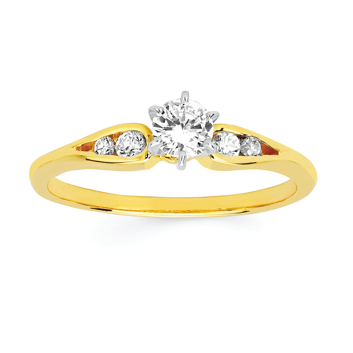 Engagement Ring: Classic Bridal: 1/10 Ctw. Diamond Semi Mount shown with 1/5 Ct. Round Center Diamond in 14K Gold shown with Shadow Wedding Band in 14K Gold - Items also available to purchase separately