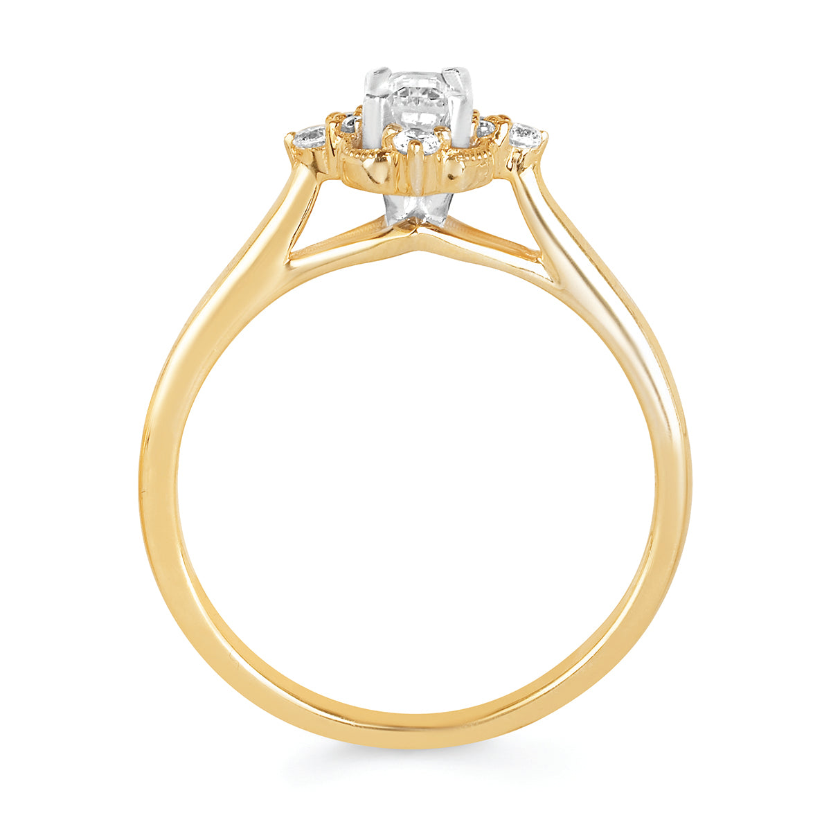Engagement Ring: Halo: 3/8 Ctw. Diamond Semi Mount Shown with 1/3 Emerald Cut Center Diamond in 14K Gold shown with Wedding Band in 14K Gold - Items also available to purchase separately