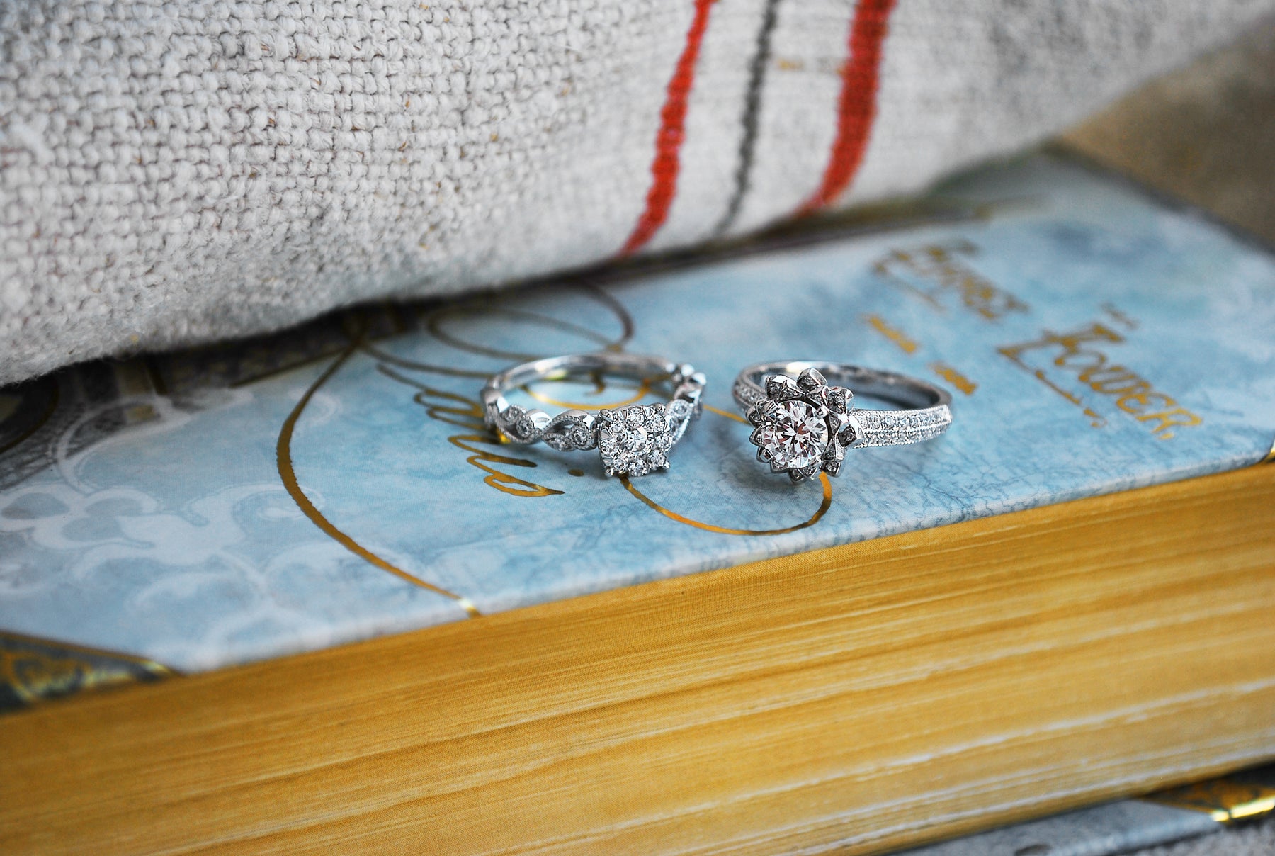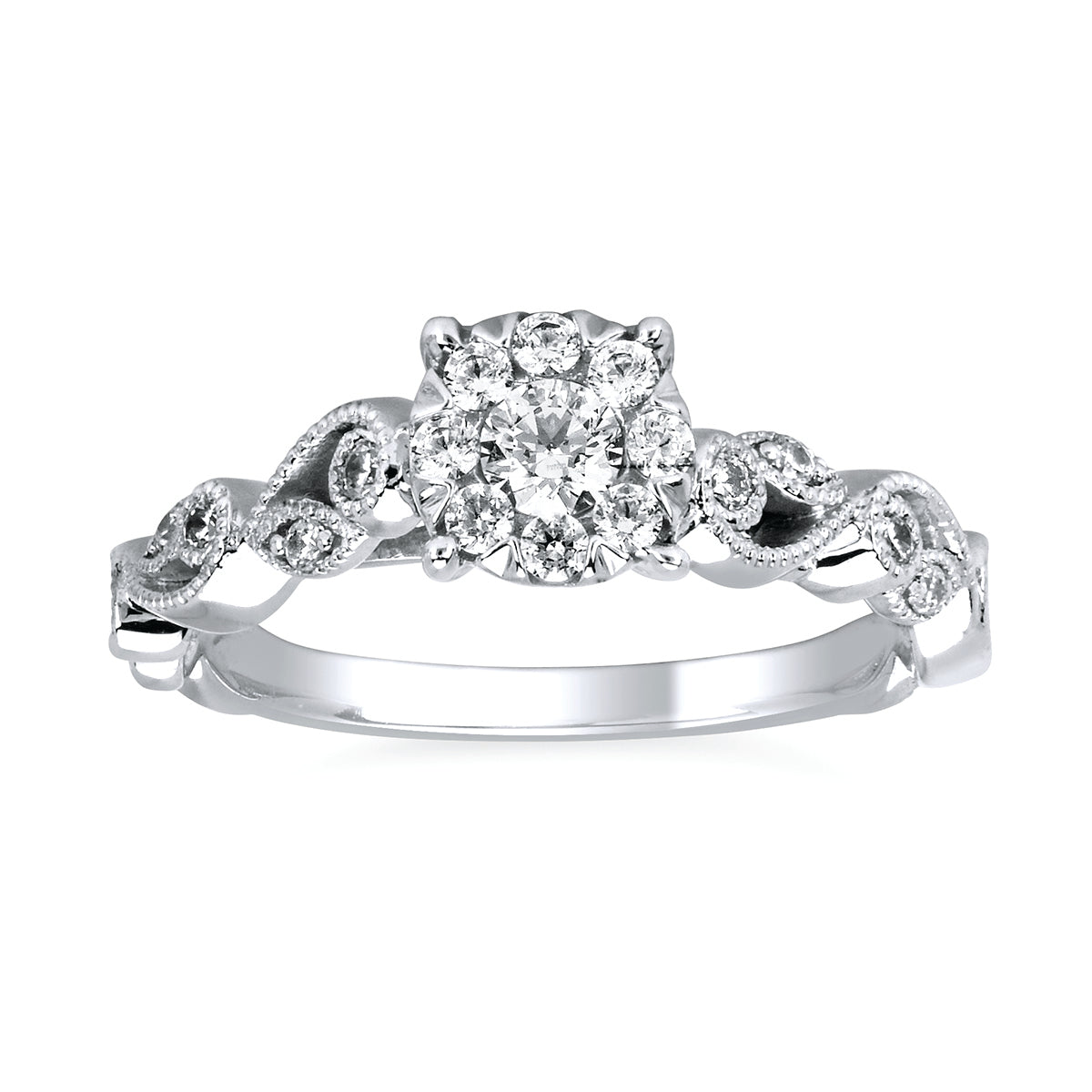 Engagement Ring: iCherish® 1/3 Ctw. Diamond Ring in 14K Gold shown with iCherish® .08 Ctw. Diamond Wedding Band in 14K Gold - Items also available to purchase separately