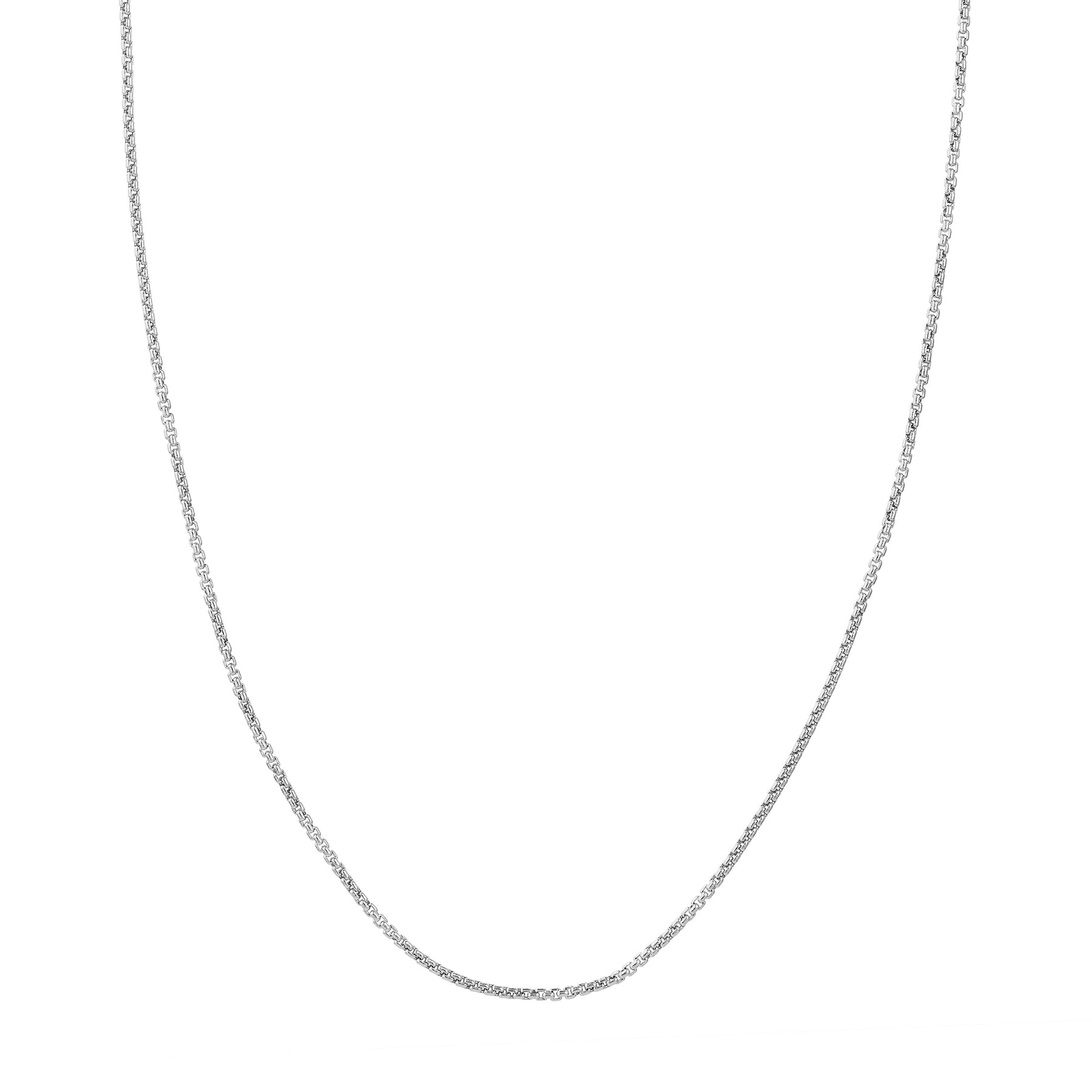The Round Box Chain gives a softer feel to the standard Box Chain. Elegant and sweet, this chain measures 1.8mm wide and is secured with a lobster lock.