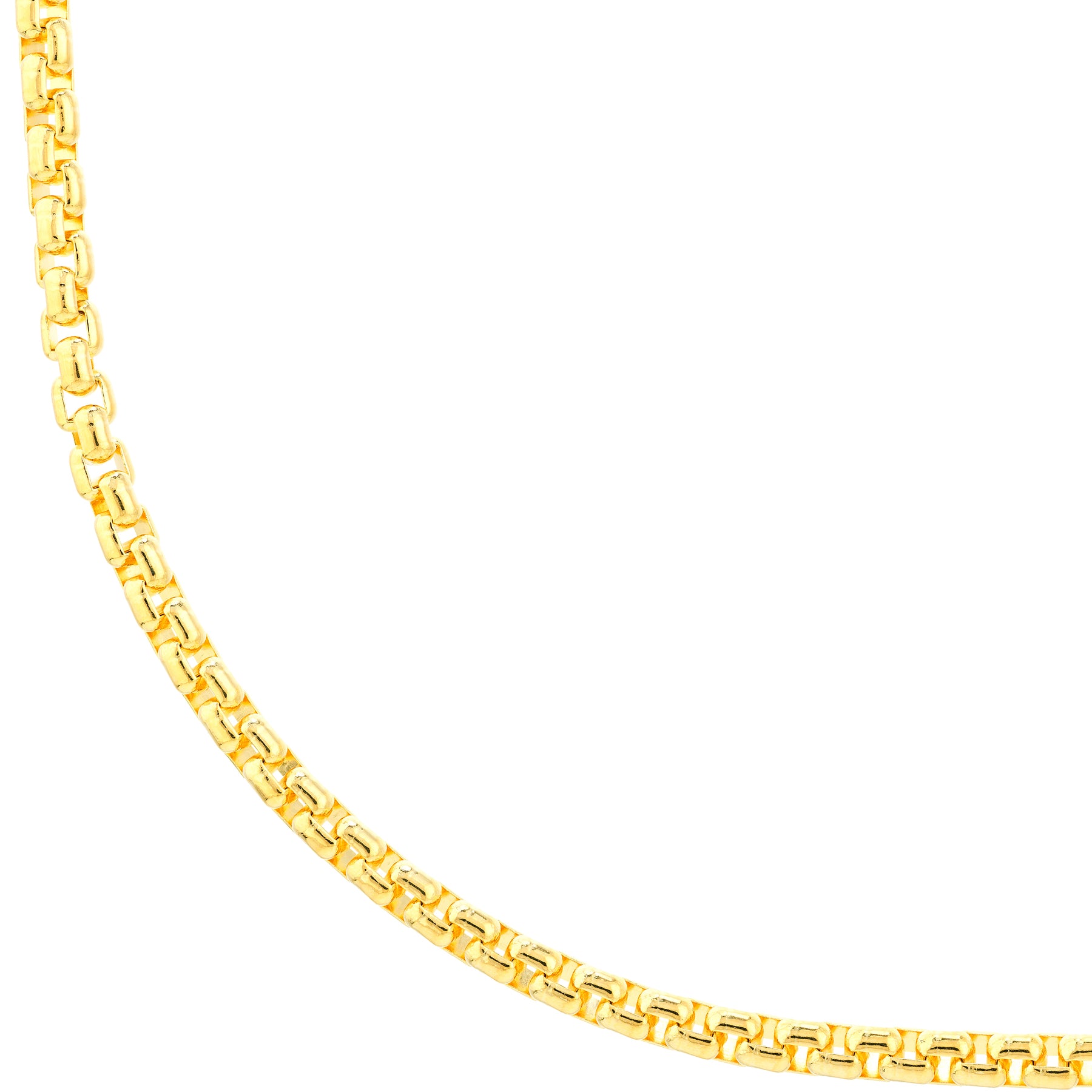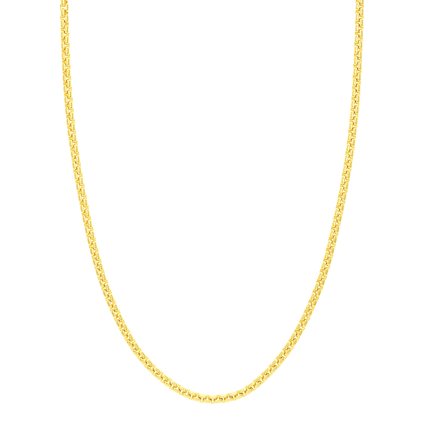 Make a bold statement with the Solid Round Box Chain. Sturdy and distinct, this 14K yellow gold chain measures 3.95mm wide and is secured with a lobster lock.