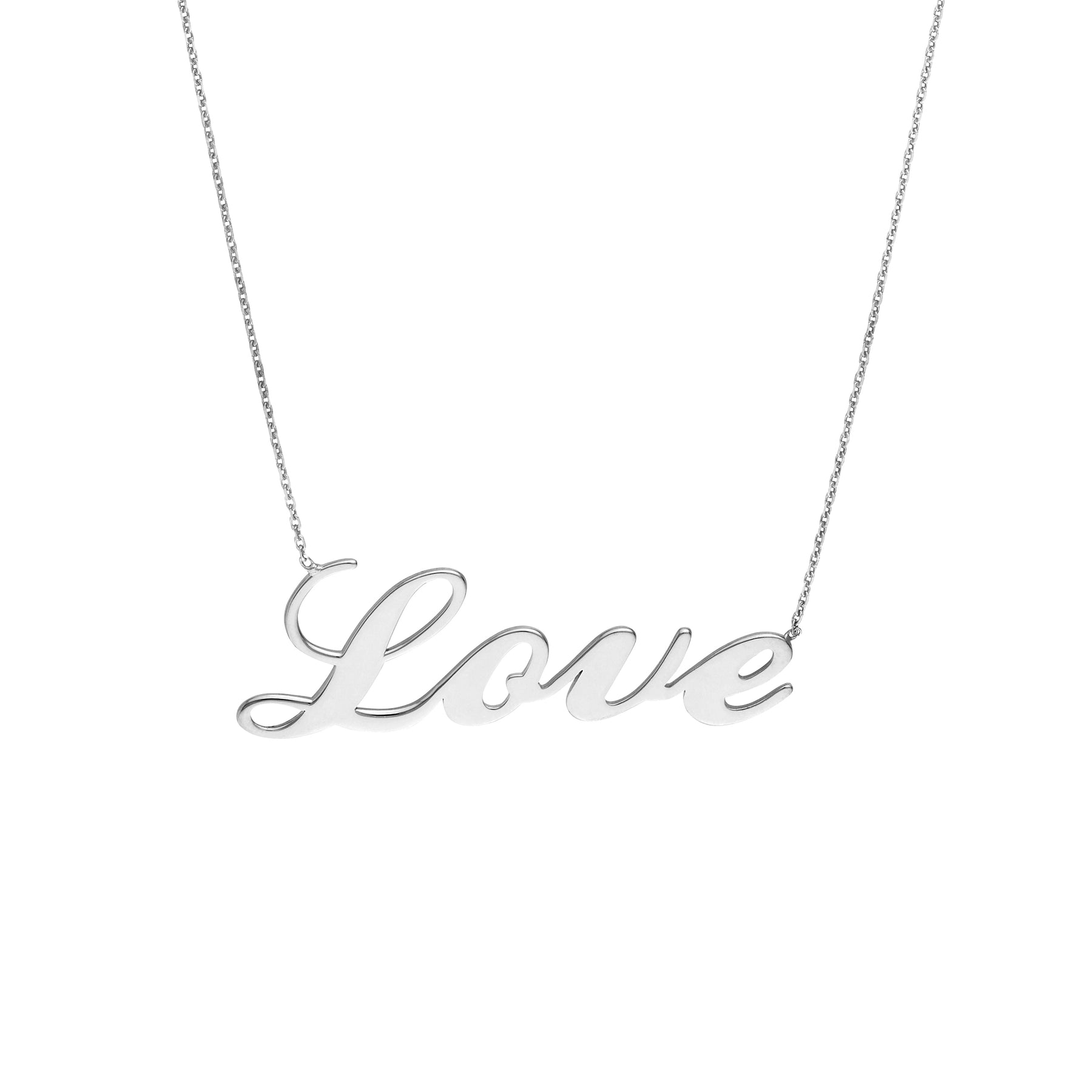 You can still choose your favorite statement while remaining budget-friendly. This necklace states 'love' in script, and is crafted in Sterling Silver. Plated in rhodium, yellow gold or rose gold.
