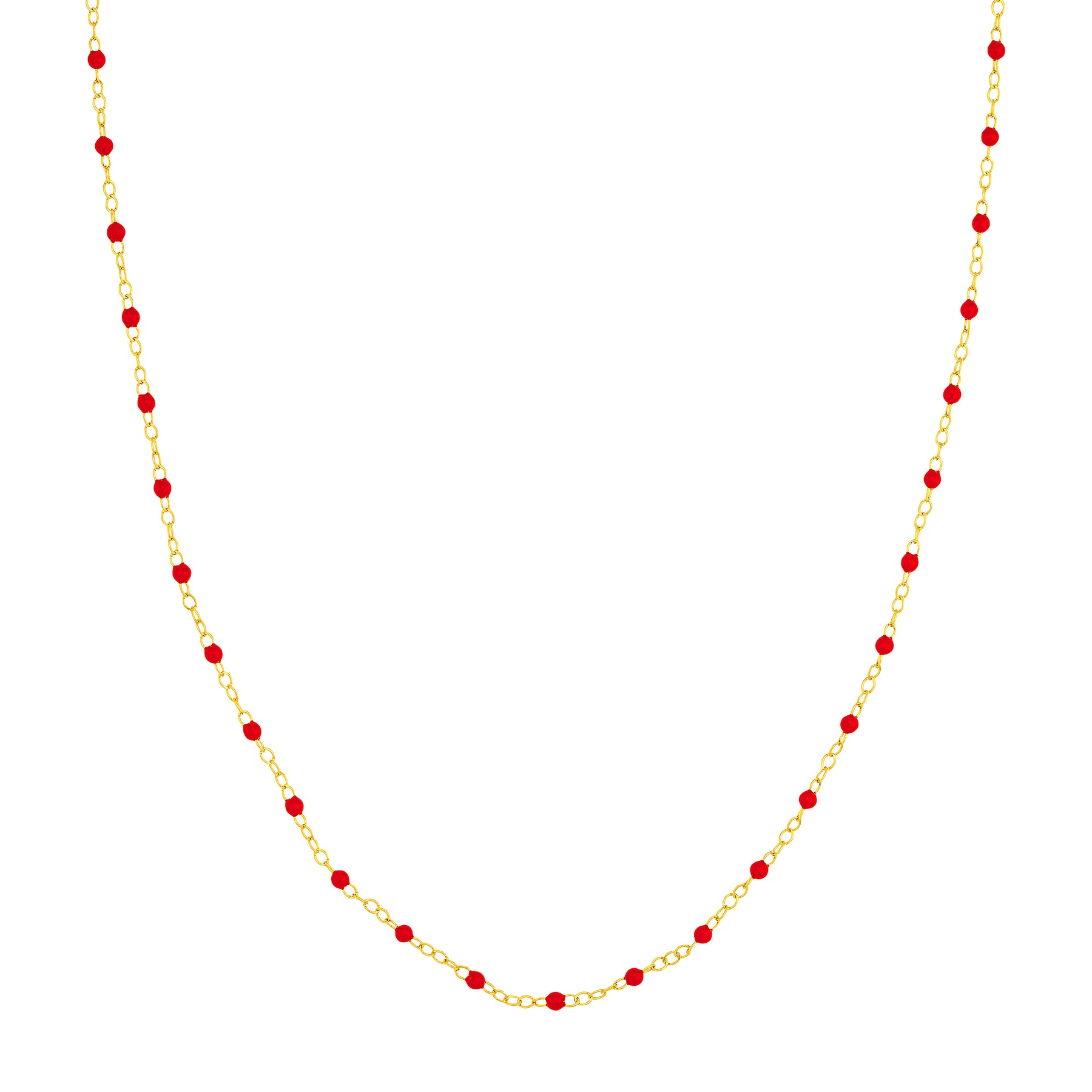 From our Color Romance Collection, this red enamel beaded piatto chain will add a pop of color to any outfit. Crafted in 14K gold, this 1 inch adjustable chain secures with a spring ring.