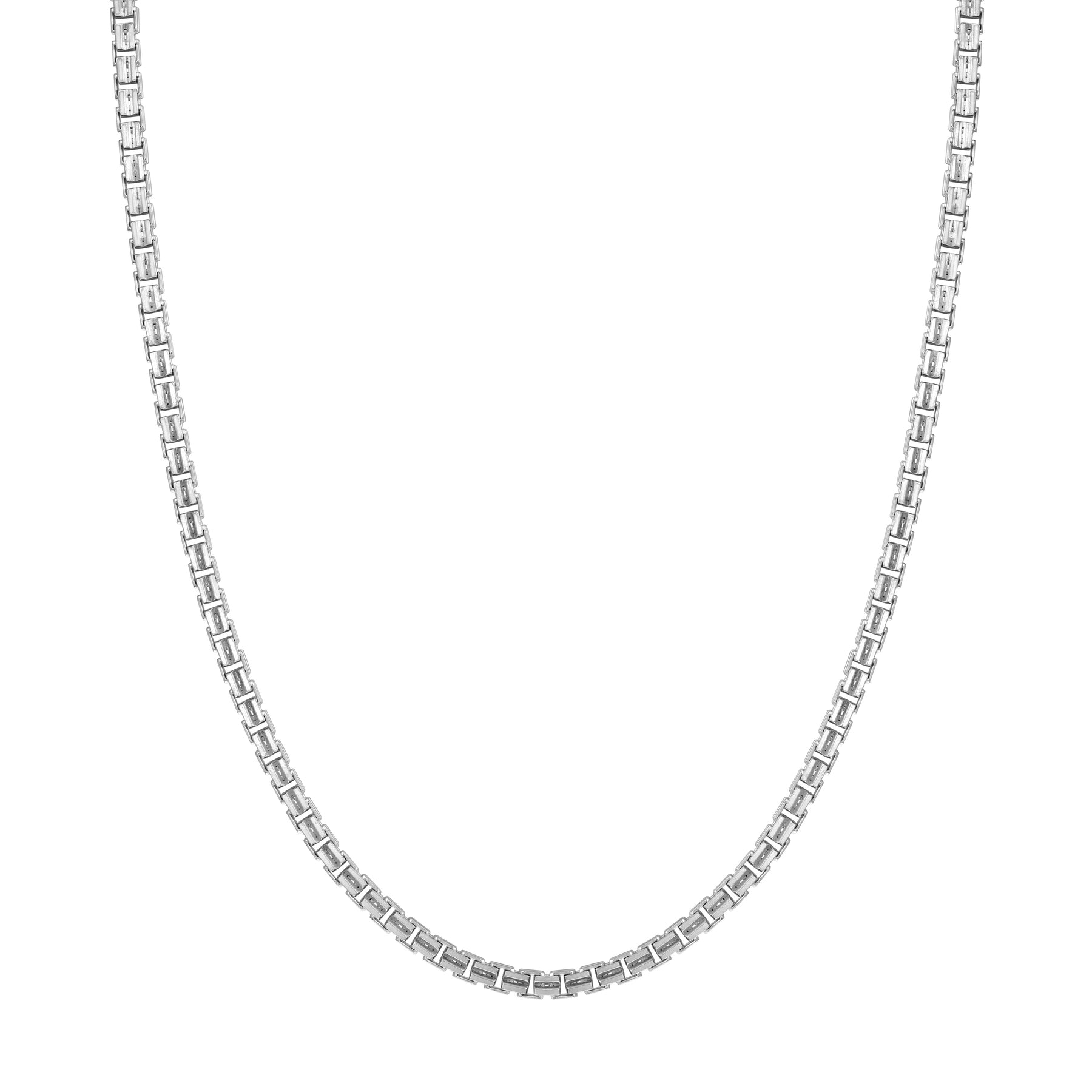 This Concave Box Chain gives an edgier feel than the standard Box Chain. Elegant and sweet, this sterling silver chain measures 3.40mm.