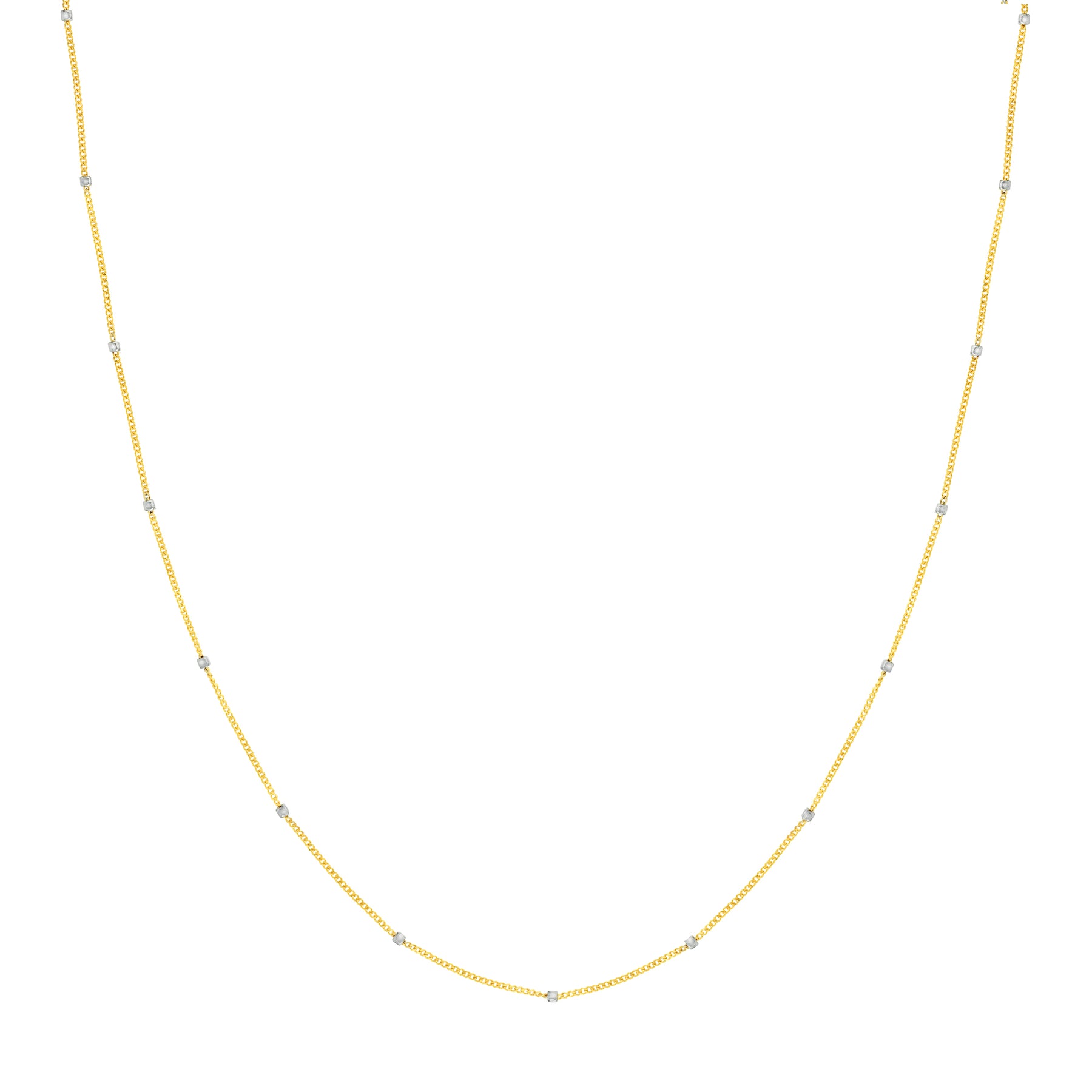 This yellow gold Saturn Chain features white gold cube elements—both in 14K. A unique, modern chain that will become a staple in your wardrobe.