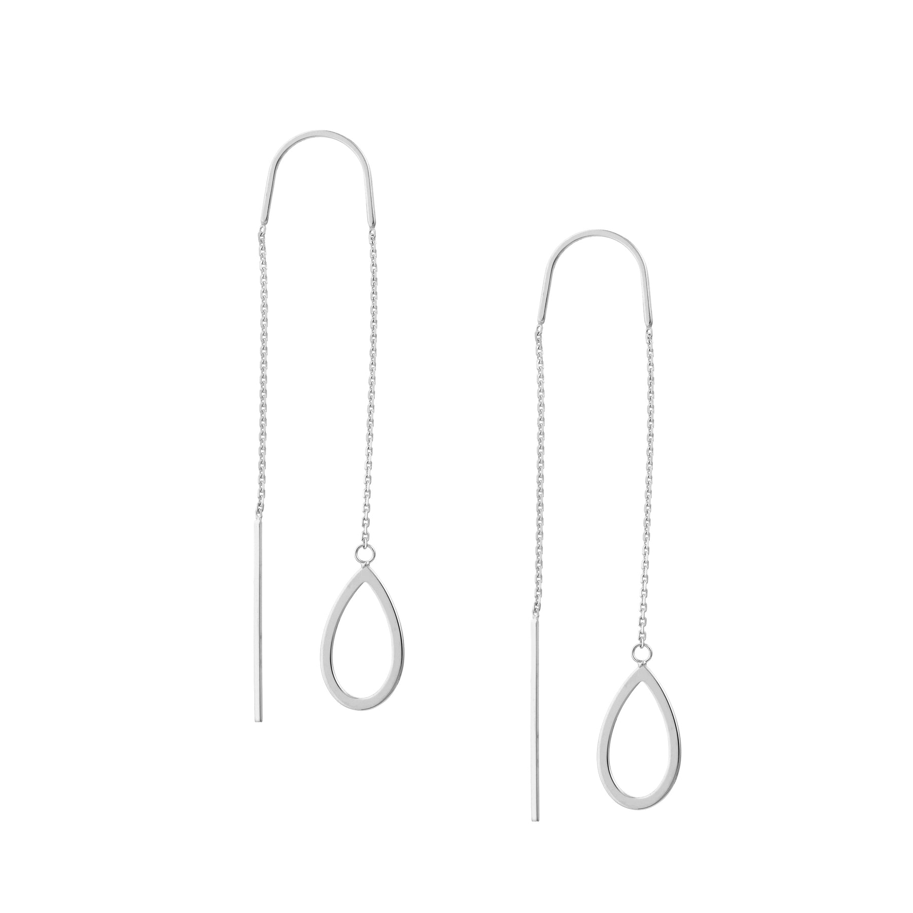 Slide these fluid threaders through your ear piercings for comfortable all-day wear. These open teardrop threader earrings are elegant yet fun.