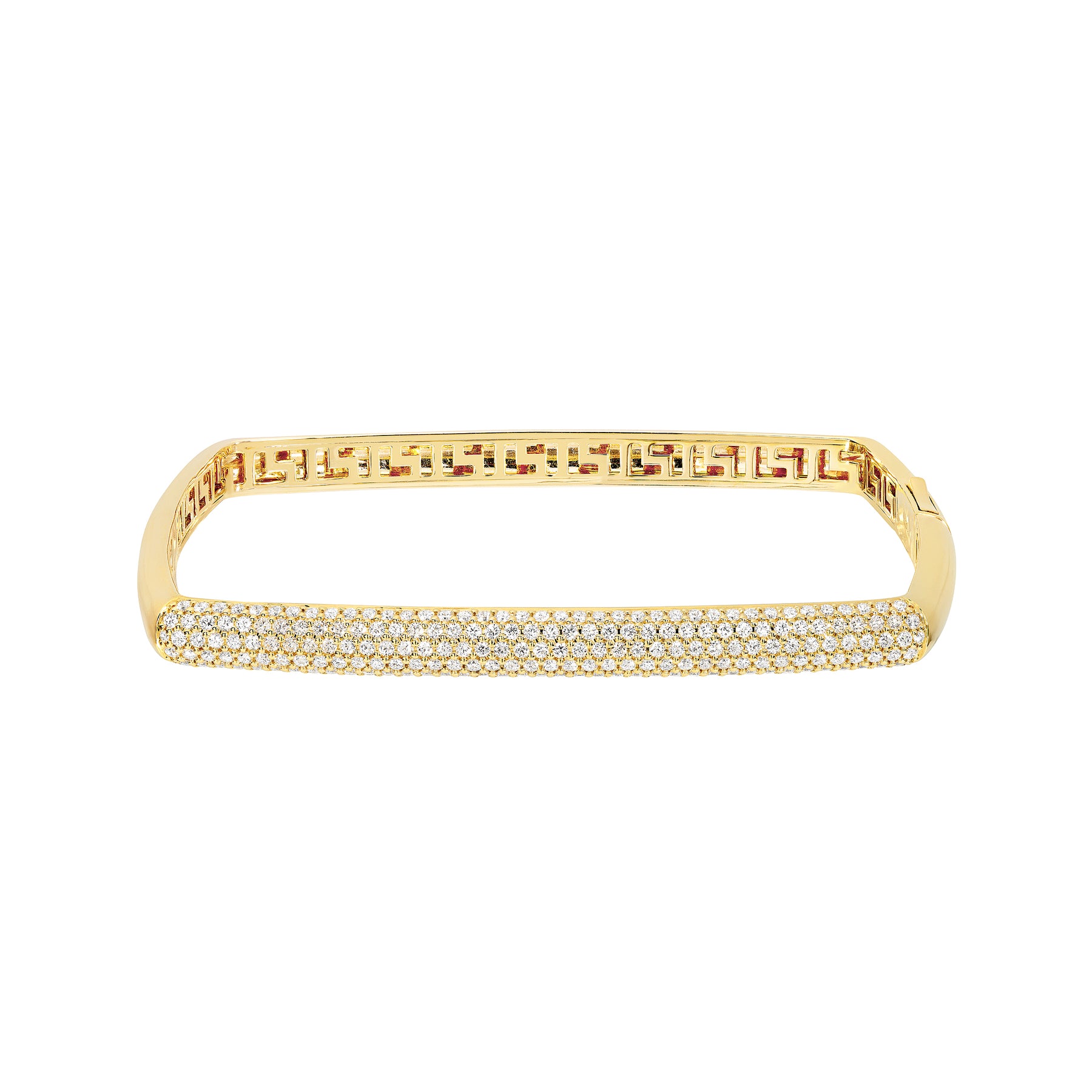 Make a bold statement with this 1-3/4ctw Diamond Square Bangle. Featuring five rows of radiant pavé diamonds on the front, this 14K gold stunning piece combines modern design with timeless elegance.