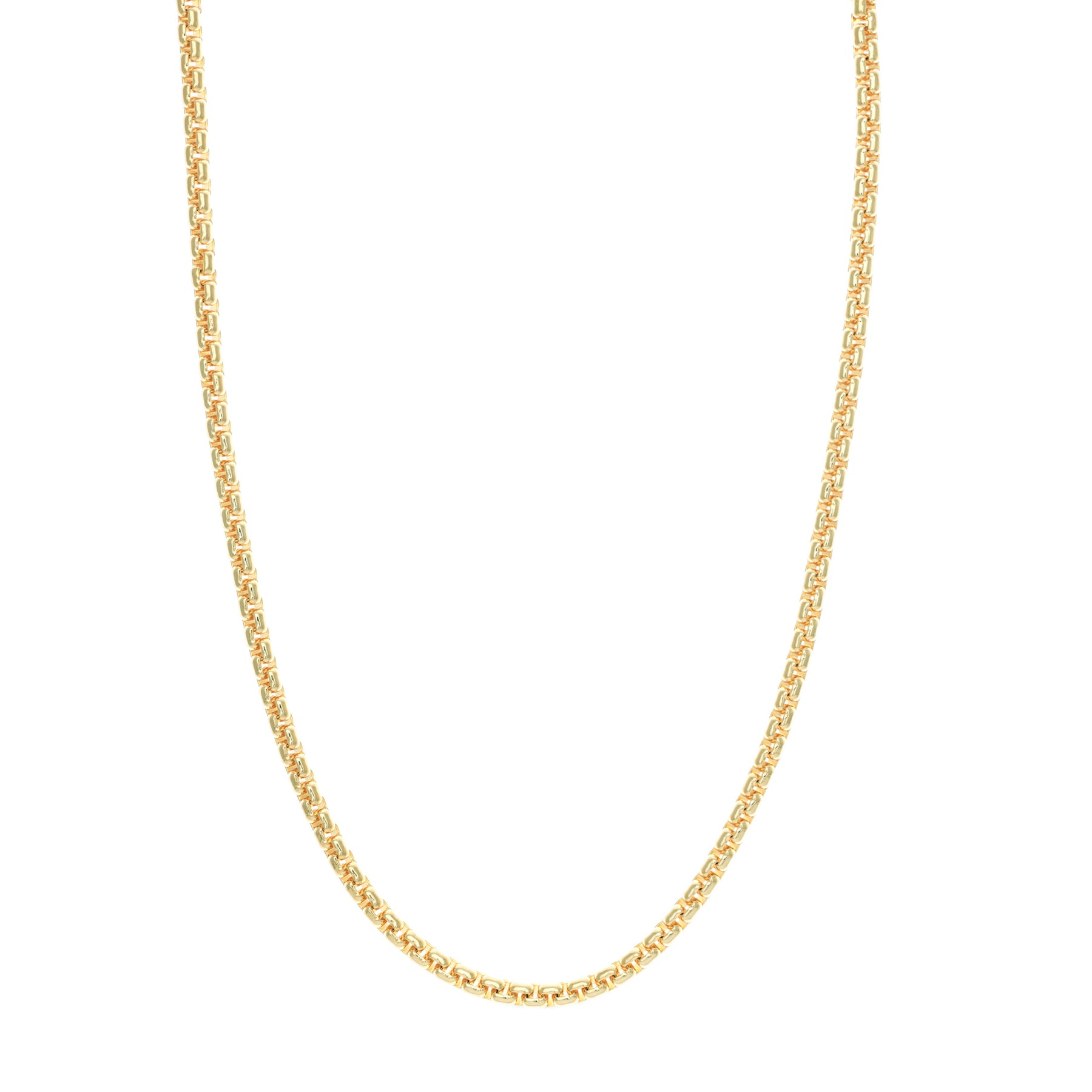 Make a bold statement with the Solid Round Box Chain. Sturdy and distinct, this 14K yellow gold chain measures 4.95mm wide and is secured with a lobster lock.