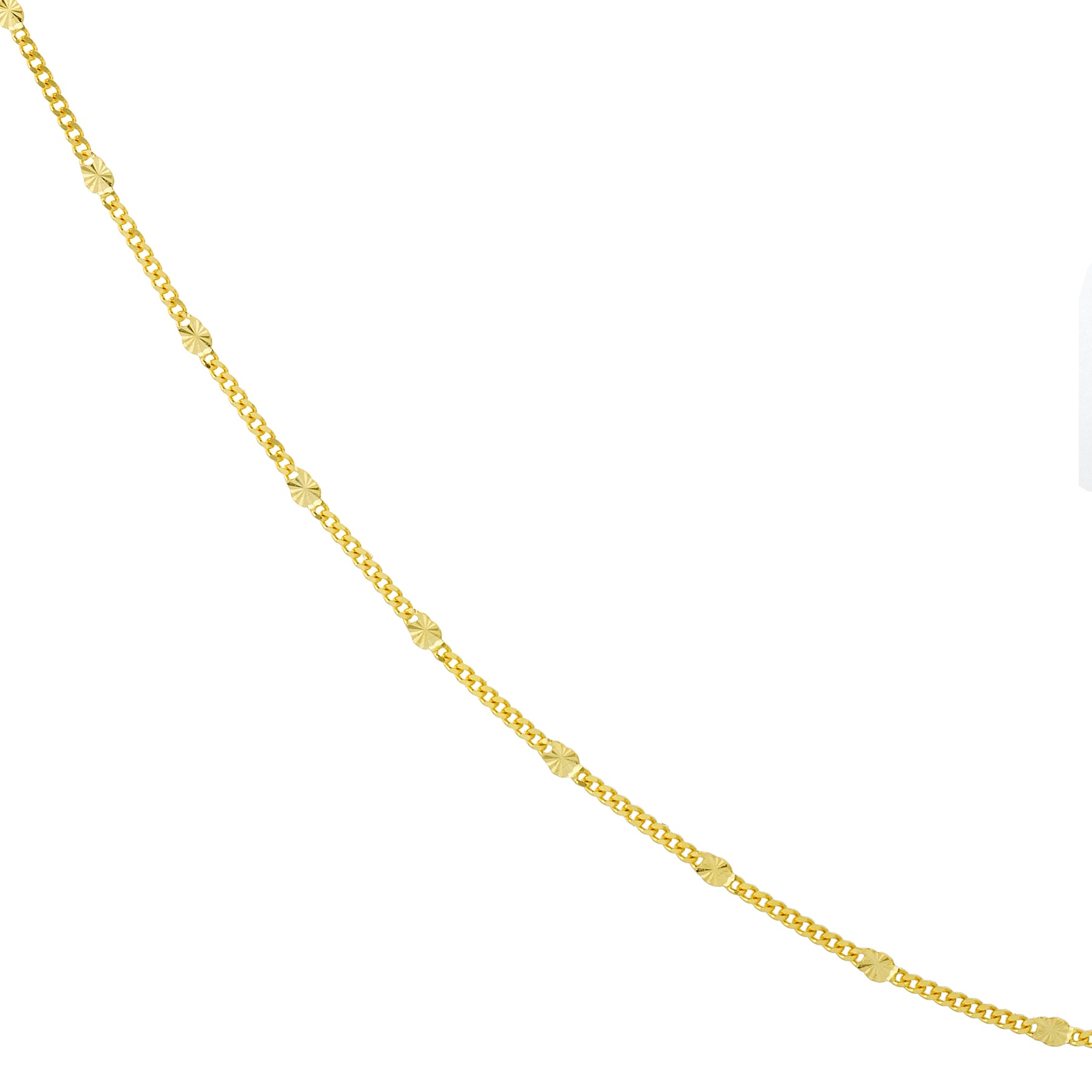 No need for layering because this chain makes more than enough of a statement. The 14K gold Baby Curb Saturn Chain features striking fluted disk stations.