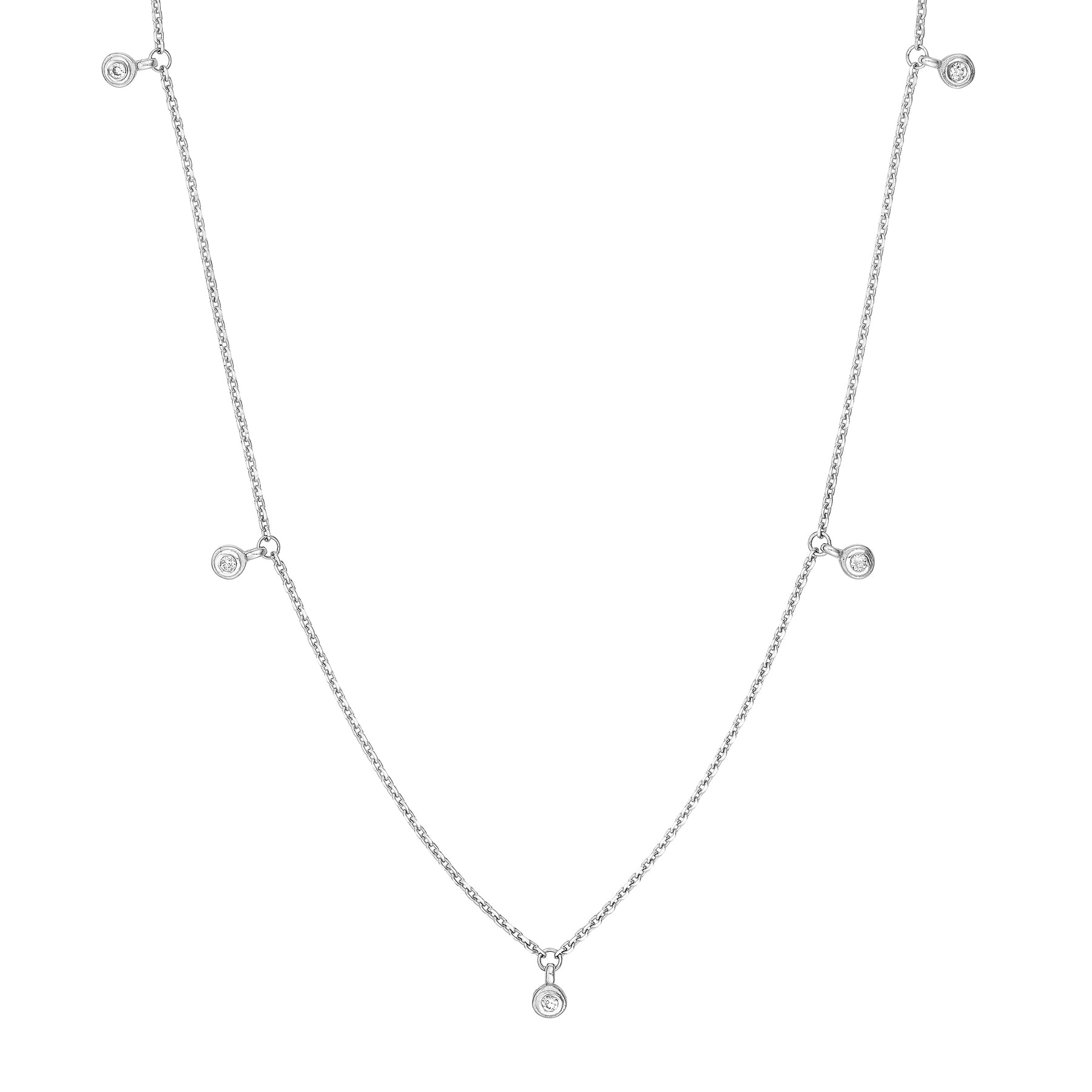 Add some sparkle to your favorite outfit with this diamond dangle necklace. Crafted in 14K yellow gold, this necklace features five 1/15tcw diamond bezel drops.