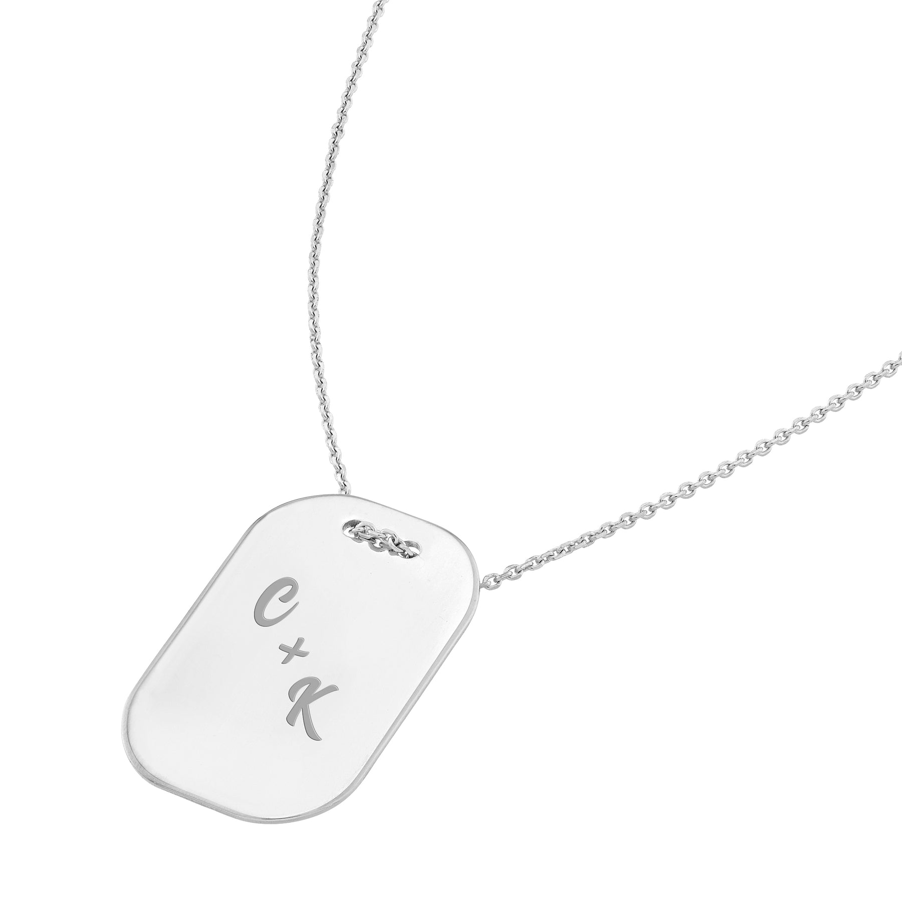 A name plate necklace makes the perfect canvas for customization. Make this 14K gold engravable dog tag necklace unique with your name.