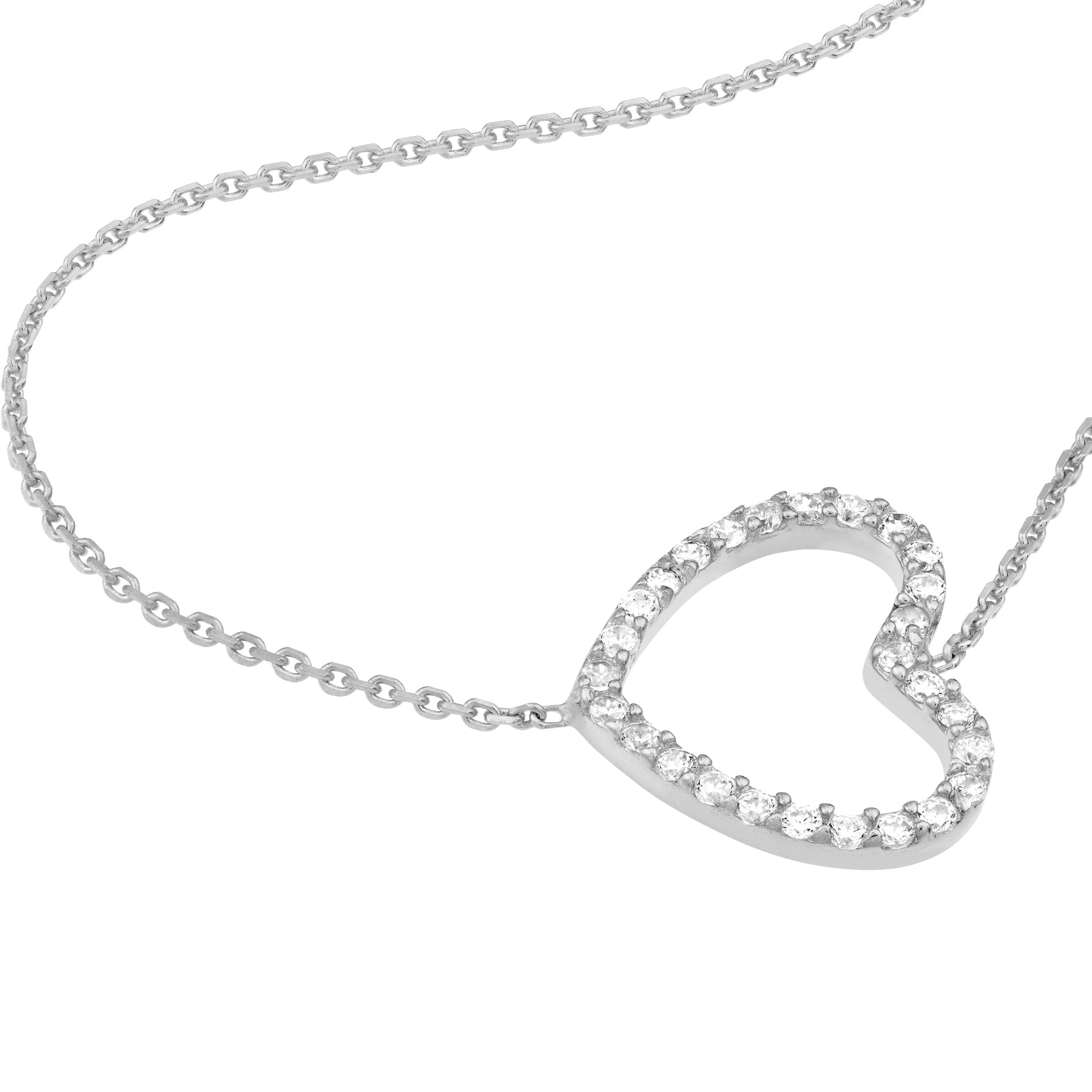 Hold love close to your heart with this sideways CZ heart necklace. The darling piece is on an adjustable chain, and is made from rhodium and gold plated sterling silver.