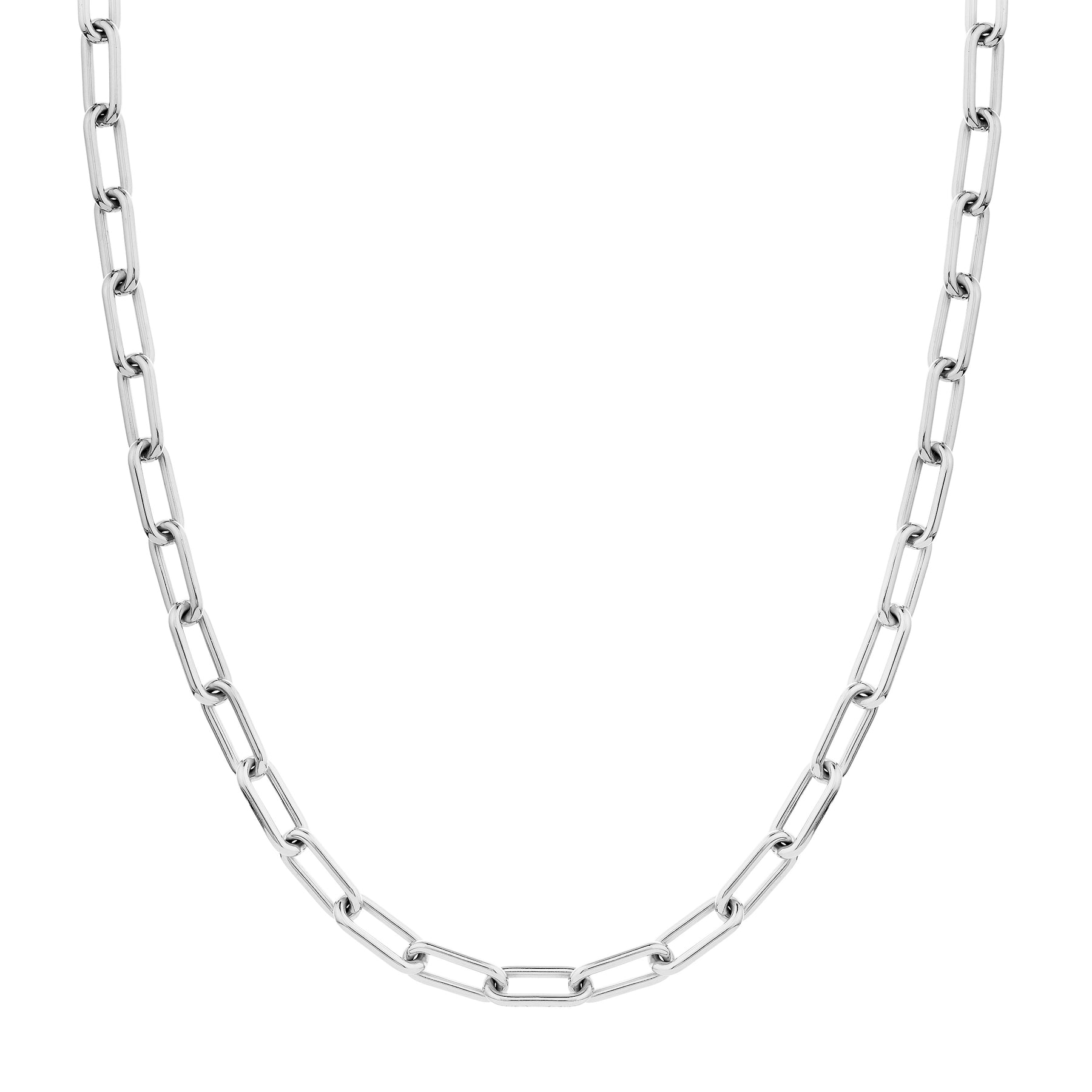 The Paper Clip Chain is a highly sought-after look, and this piece is a bold example. Made in Sterling Silver, this solid chain