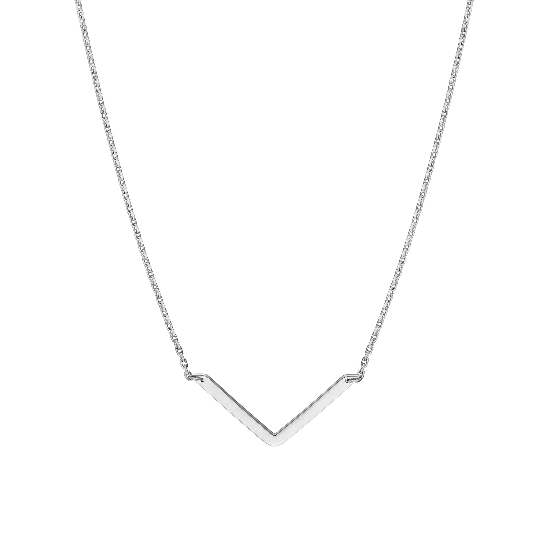 Add a contemporary staple to your wardrobe. This V-shape on chain drop necklace is a great addition to any look. The necklace is adjustable from 16-18 inches.