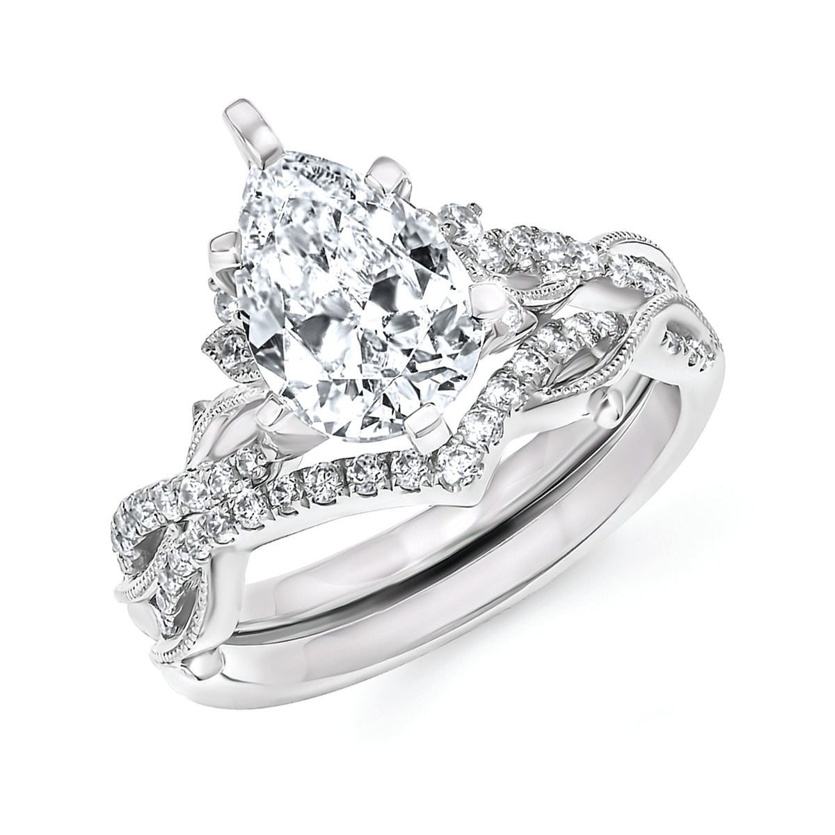 Forever Elegant® 1/5 Ctw. Diamond Semi Mount shown with 2 Ct. Pear Center Diamond in 14K Gold Forever Elegant® 1/8 Ctw. Diamond Wedding Band in 14K Gold Items also available to purchase separately