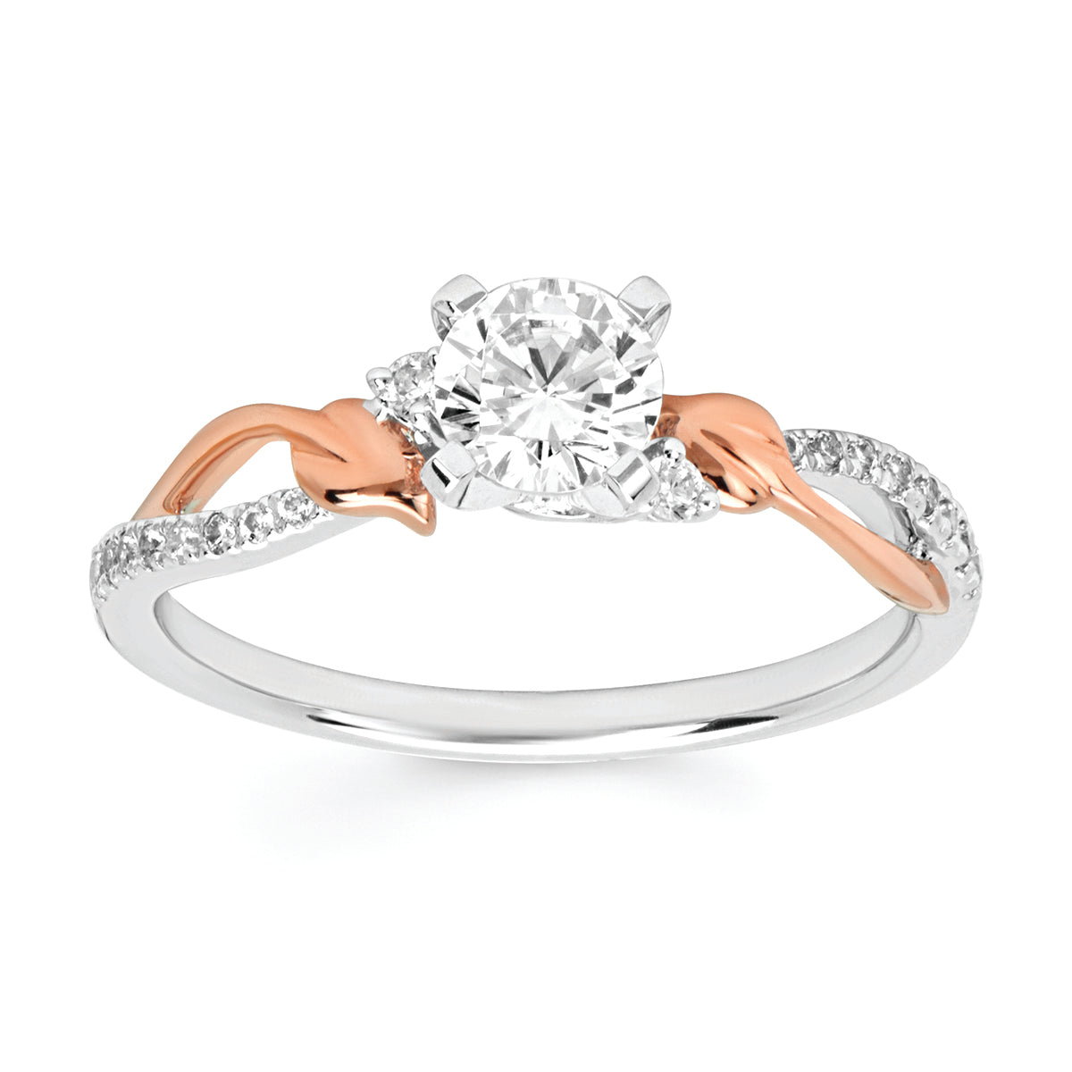 Engagement Ring: Modern Bridal: 1/10 Ctw. Diamond Semi Mount shown with 1/2 Ct. Round Center Diamond in 14K Gold shown with 1/6 Ctw. Diamond Wedding Band in 14K Gold - Items also available to purchase separately