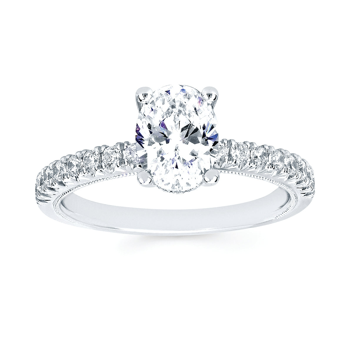 Engagement Ring: Modern Bridal: 1/3 Ctw. Diamond Semi Mount shown with 1 Ct. Oval Center Diamond in 14K Gold shown with 1/3 Ctw. Diamond Wedding Band in 14K Gold - Items also available to purchase separately