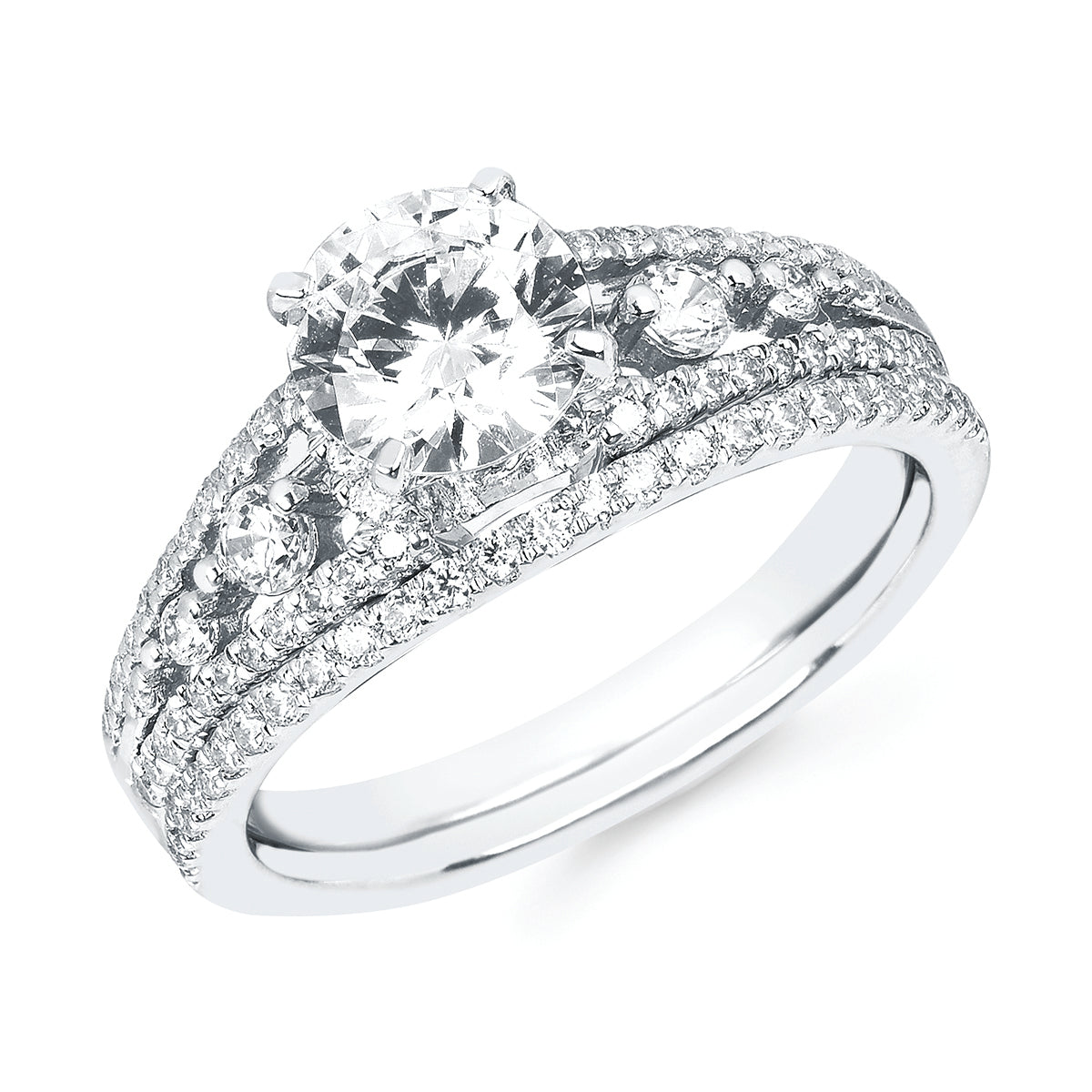 Vintage Bridal: 3/8 Ctw. Diamond Semi Mount shown with 1 Ct. Round Center Diamond in 14K Gold 1/10 Ctw. Diamond Wedding Band in 14K Gold Items also available to purchase separately